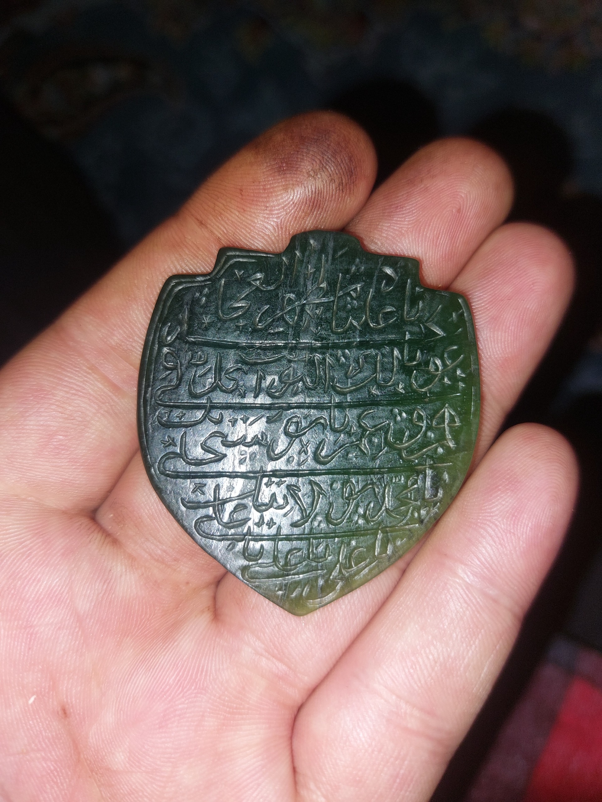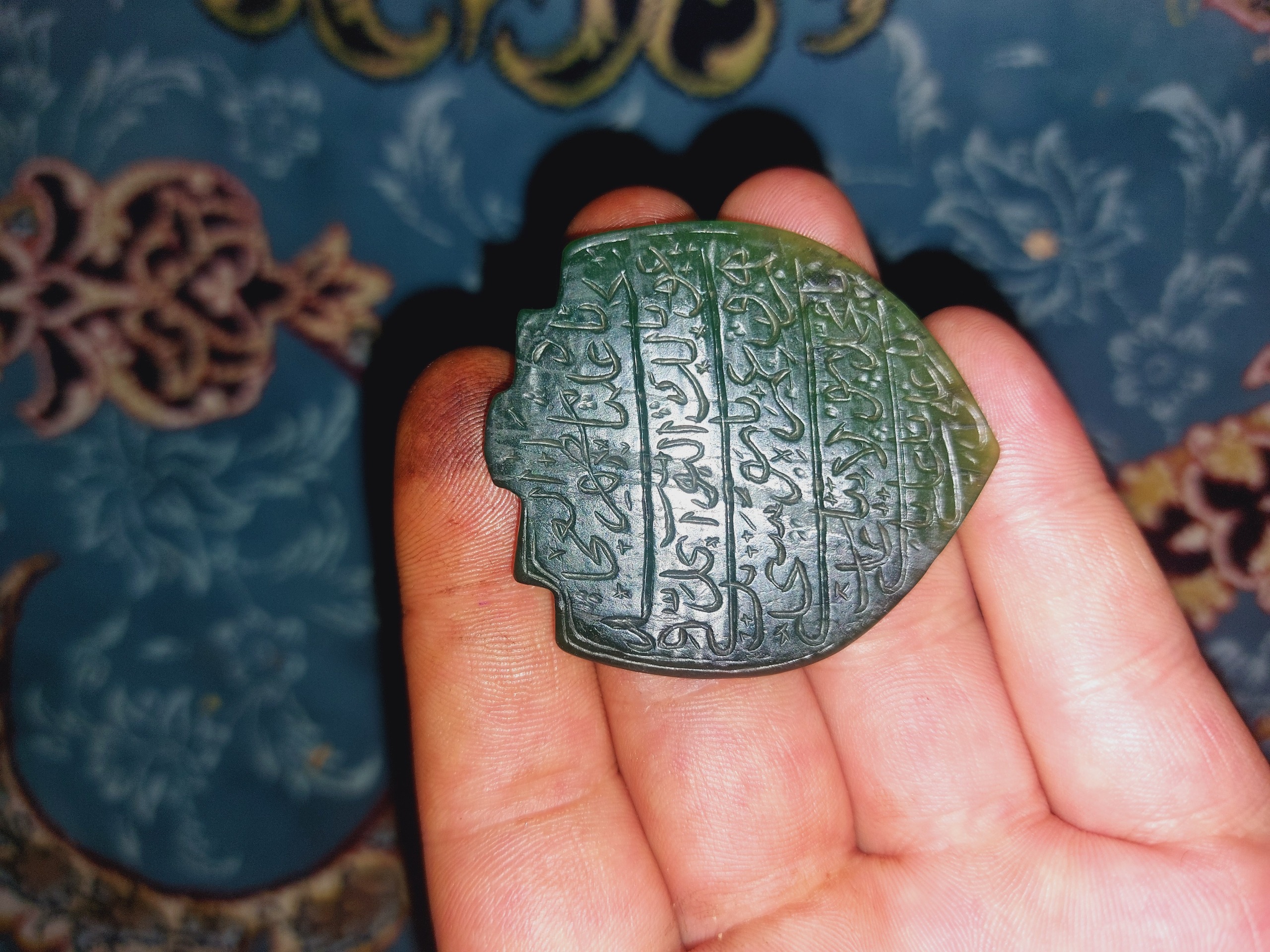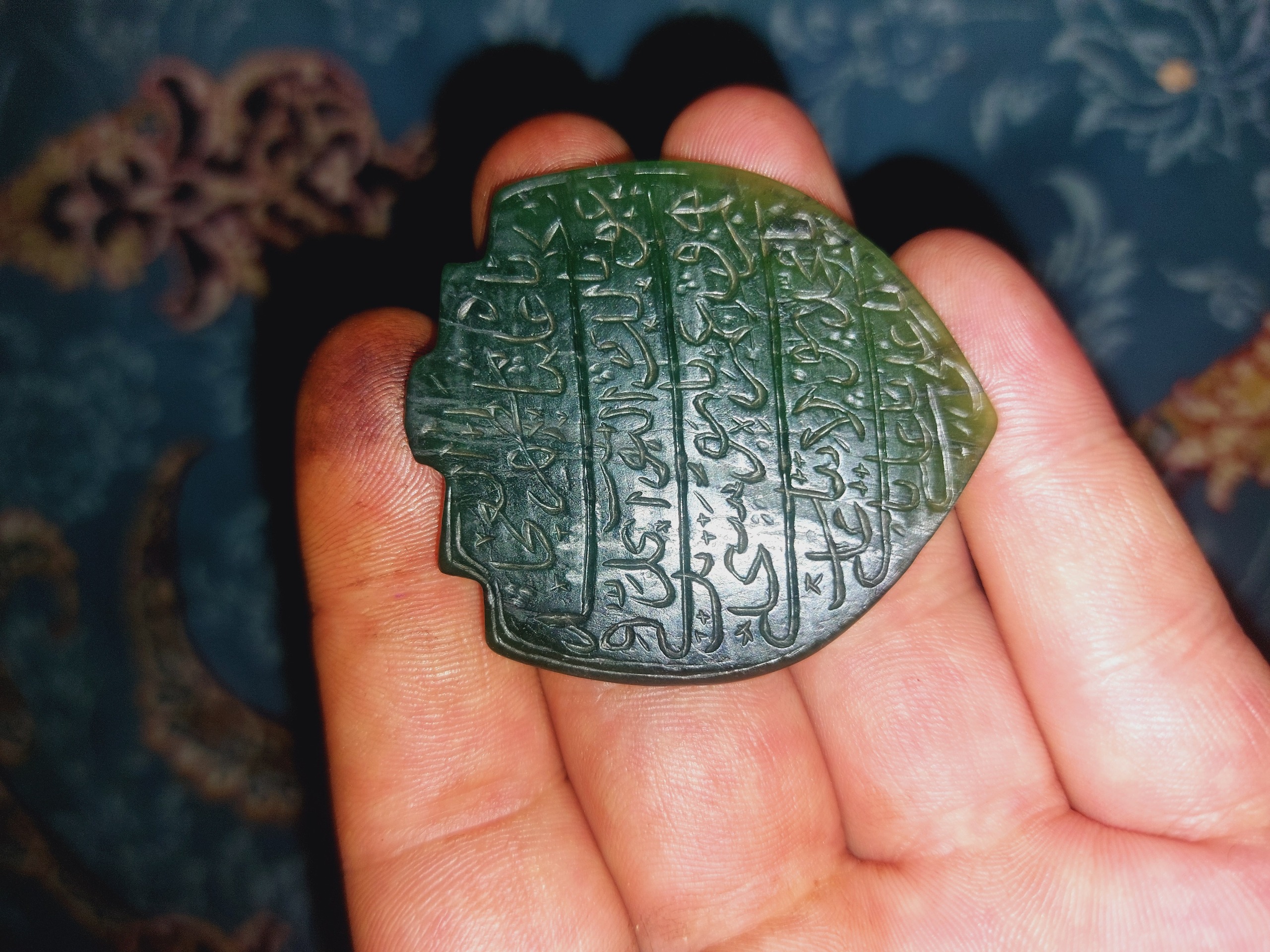 یک عدد یشم خطی کهنه بسیار کمیاب و خاص گردنی دعای مبارکه نادعلی مربوط به دوره صفوی ب قبل