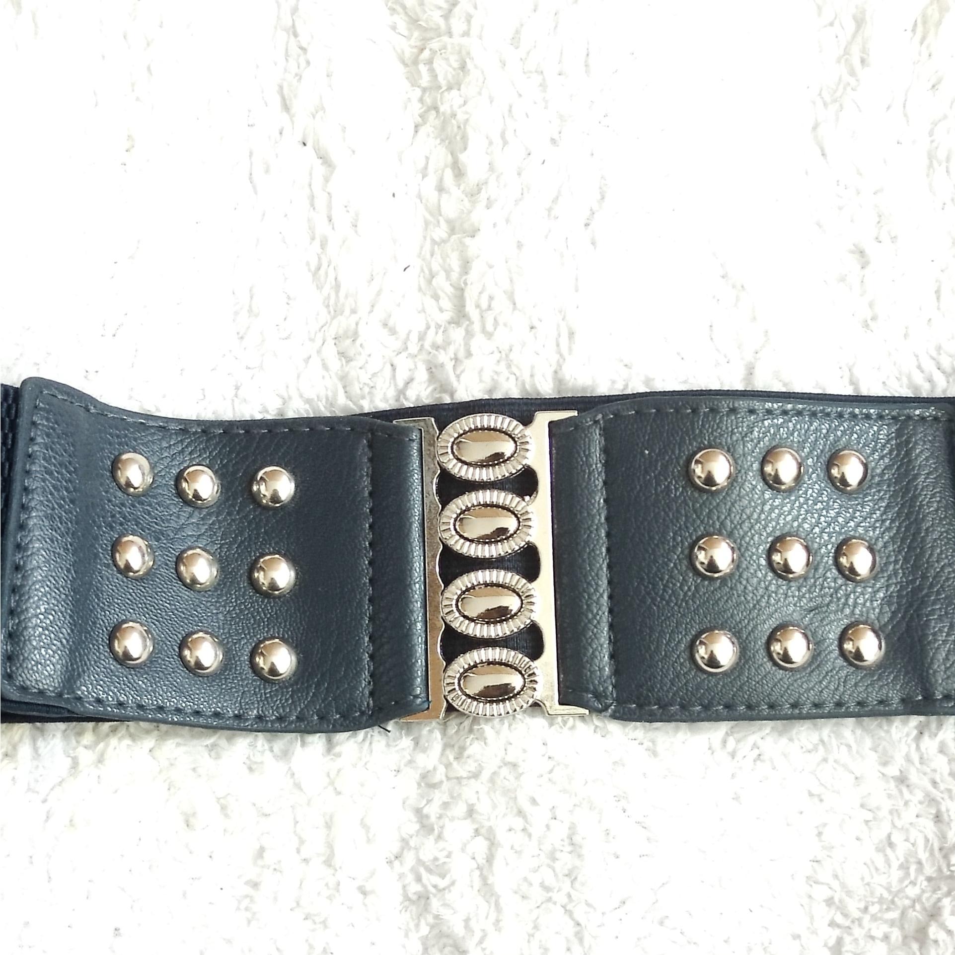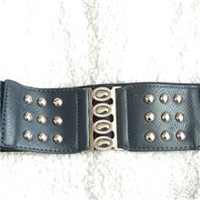 کمربند کشی پهن زنانه با کناره های چرم و سگک فلزی