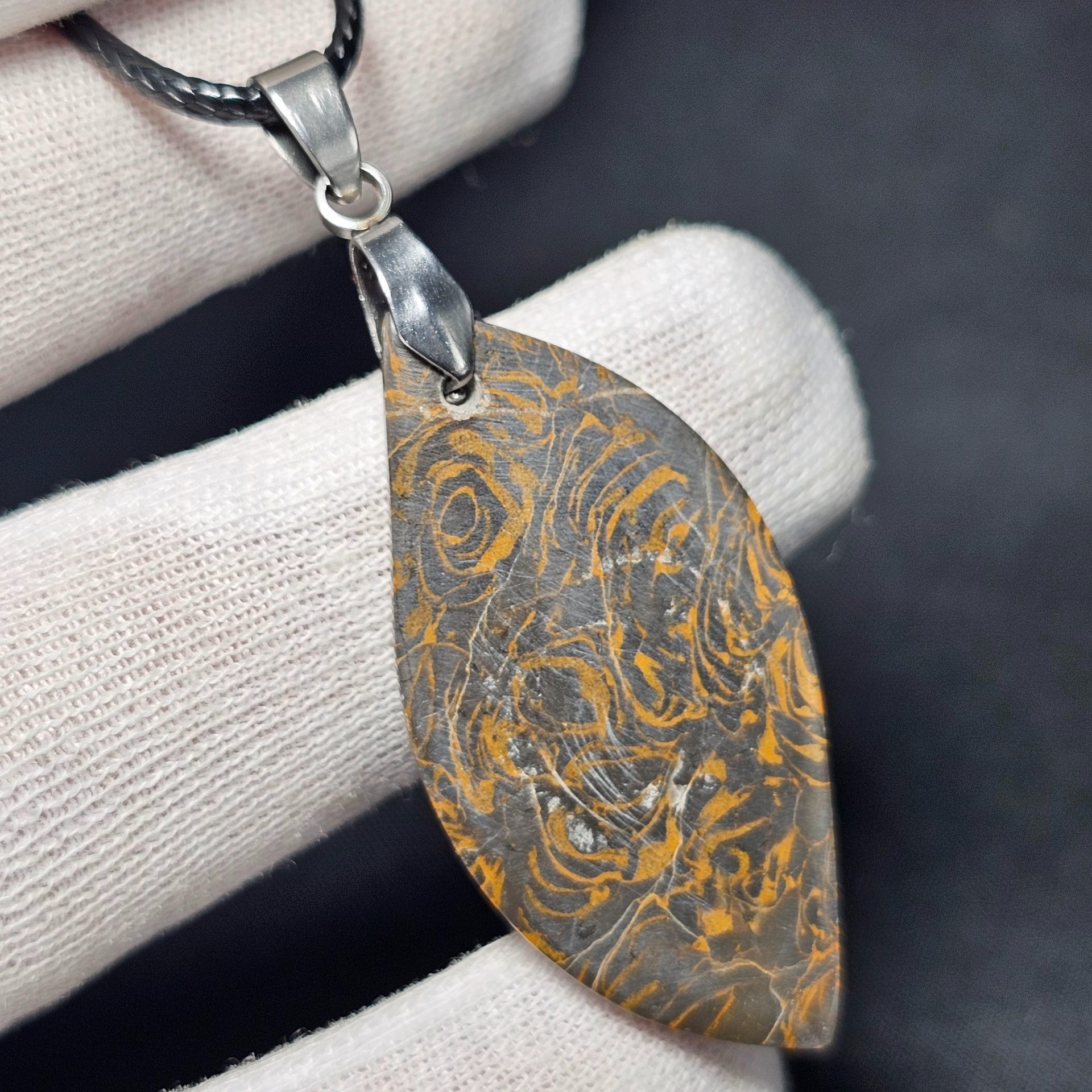 آویز گردنبند سنگ طبیعی جاسپر پیریت معدنی آذربایجان کد 37549