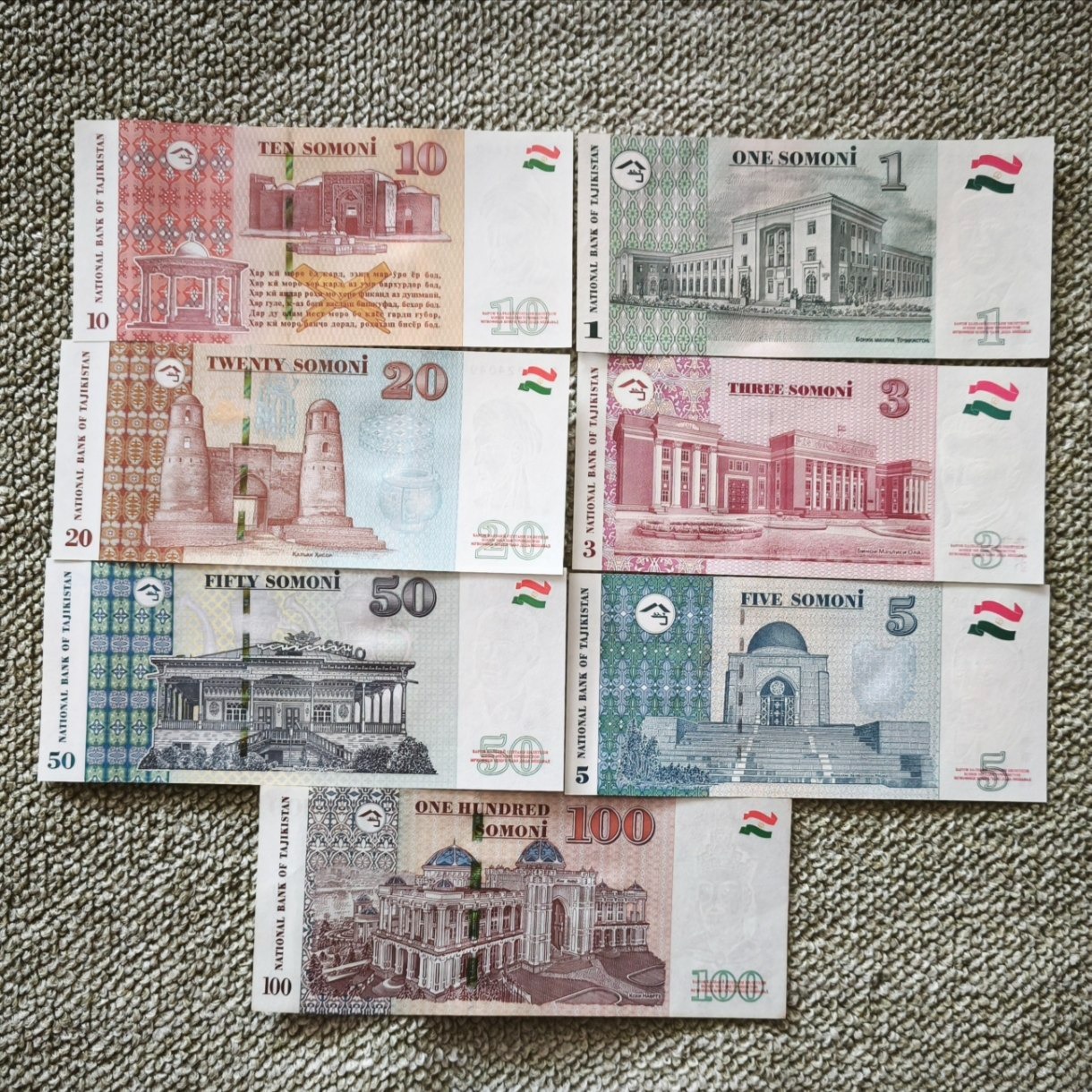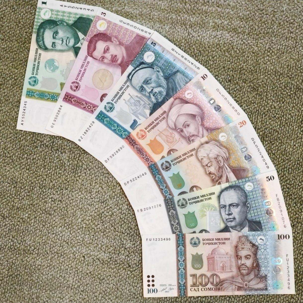 ست 7 برگی سامانی تاجیکستان با تصاویری از مشاهیر فرهنگی ایران زمین و کشور تاجیکستان، ابوعلی سینا، امیر اسماعیل سامانی، میرعلی همدانی، میرزا ترسون زاده، صدرالدین عینی و... . اسکناس ها همگی بانکی هستند اما اسکناس 100 سامانی یک موج نامحسوس کیفی داره که لازمه موقع خرید مدنظر داشته باشید.