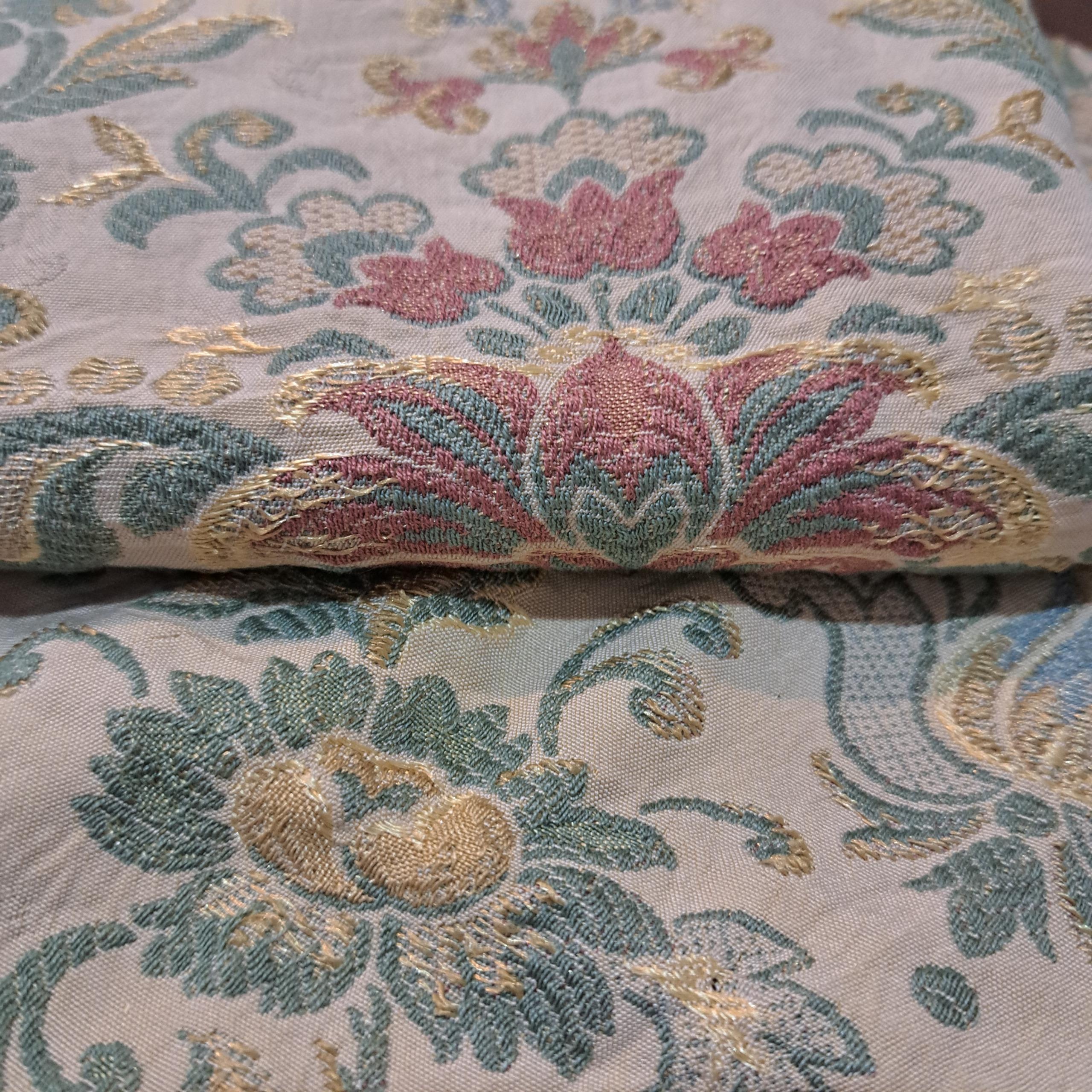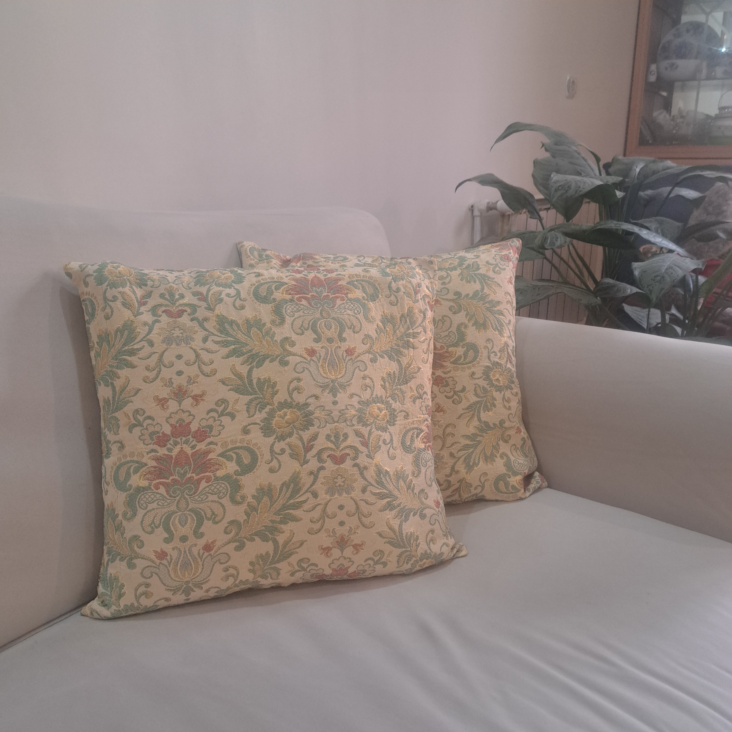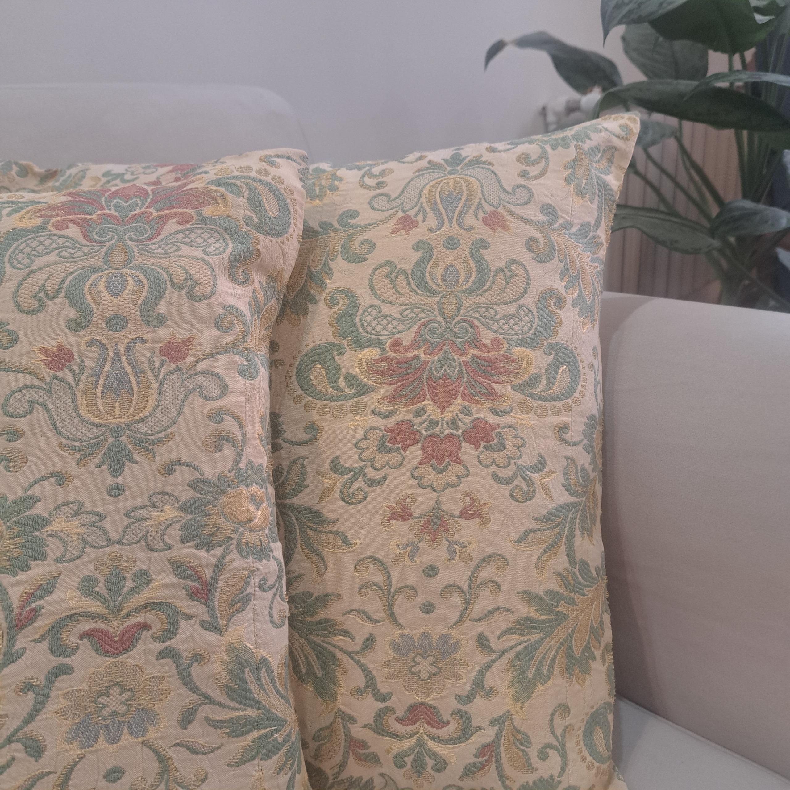 یک جفت کوسن زیبای قدیمی پارچه شنل با سوزن دوزی ظریف ماشینی ابریشمی زری دوزی شده و فاخر زیپ دوزی شده با زیپ خارجی