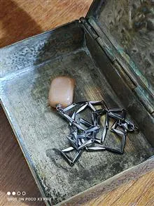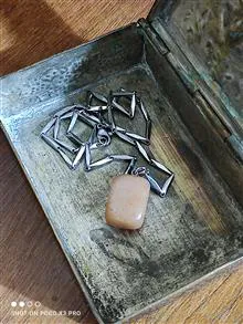 یک عدد گردن آویر قدیمی با زنجیر من زیاد سنگ شناس نیستم ولی فک میکنم این سنگ عقیق باشه کهنه و قدیمی زنجیرش جدیده مطابق تصویر