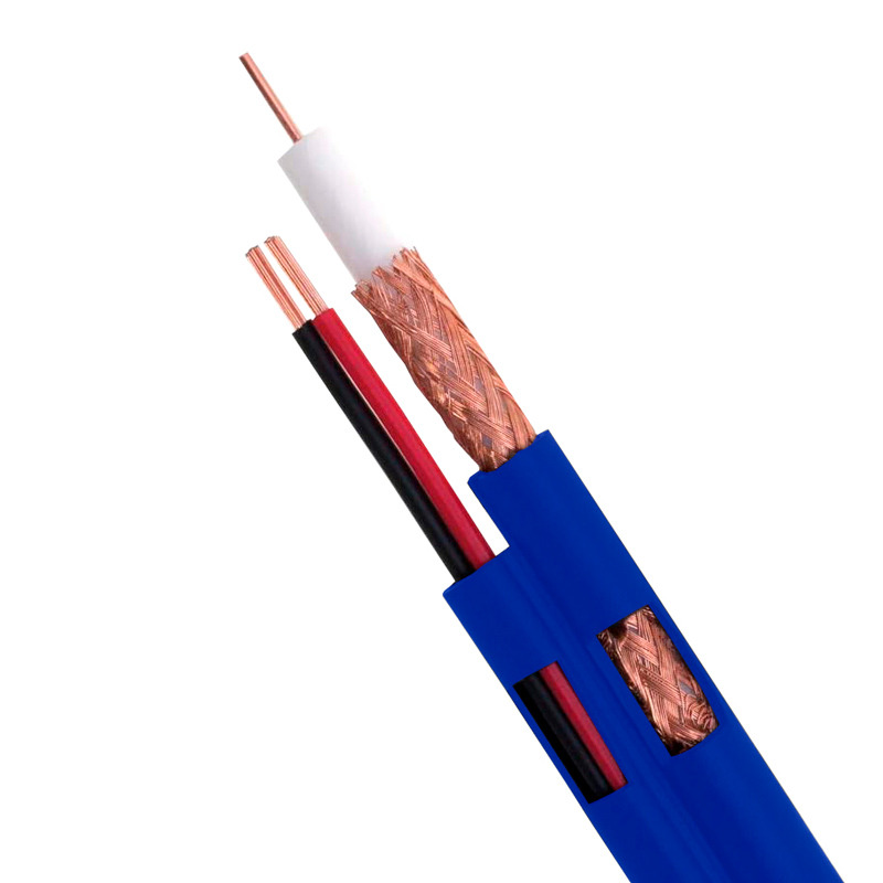یک کابل کواکسیال و یک کابل برق دو رشته سیم افشان مسی با سطح مقطع 0٫5 میلی مترکابل با طول 100 متر با روکشی از جنس PVC، مناسب جهت انتقال سیگنال های صوتی و تصویریمغزی مسی به قطر 0٫7 میلی متر و دارای یک بافت آلومینیومی با پوشش دهی 96 درصد به عنوان شیلد