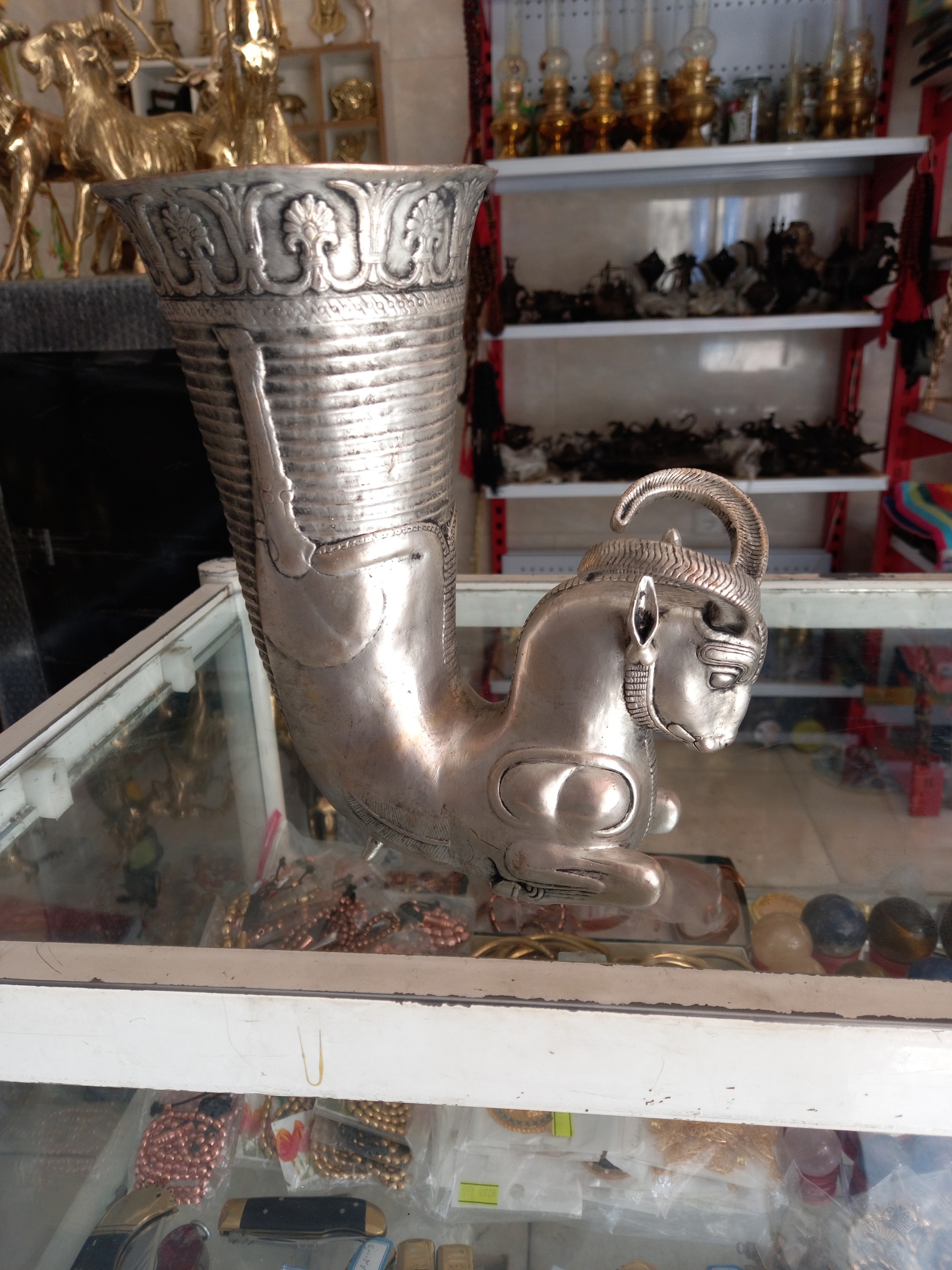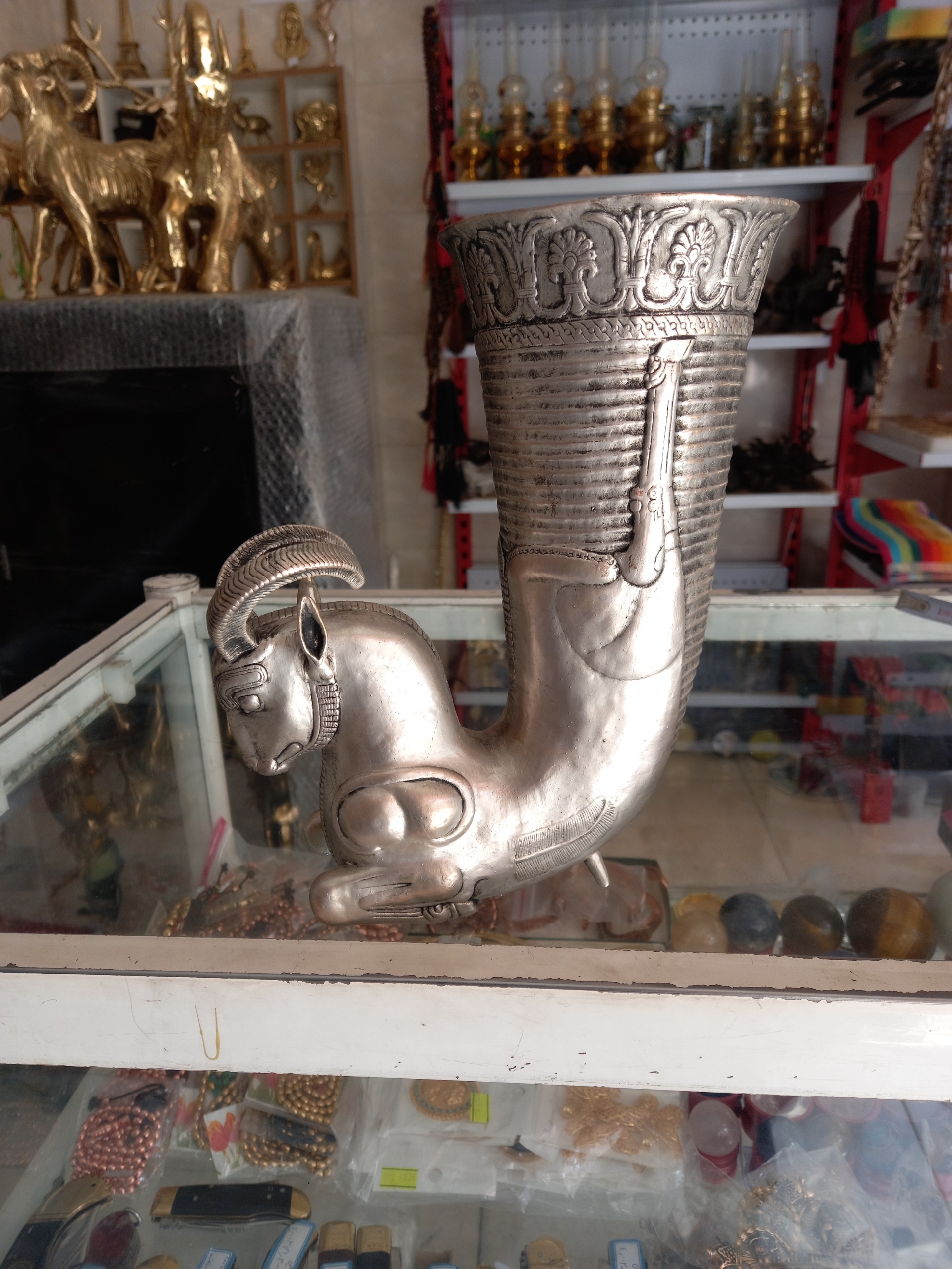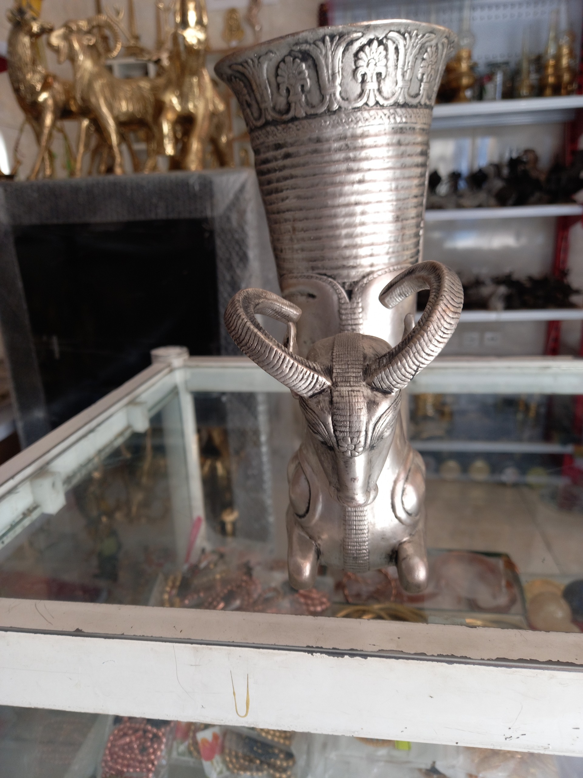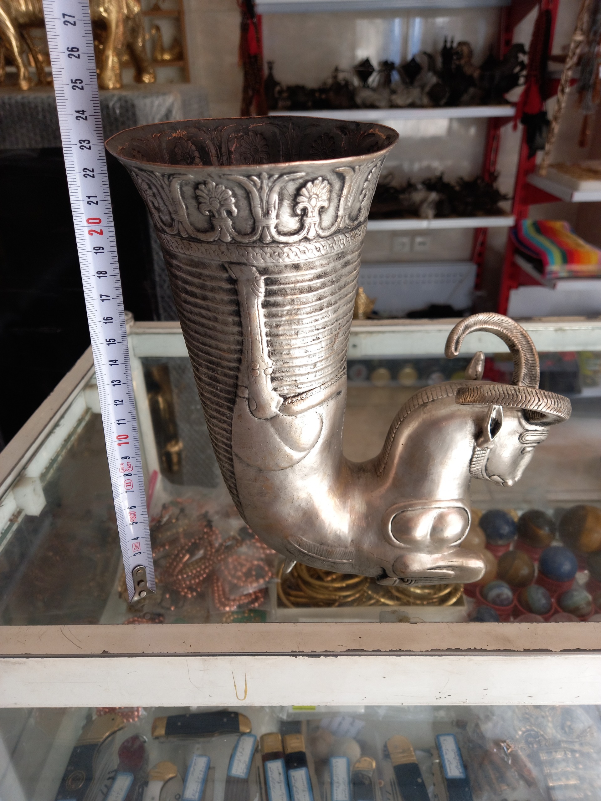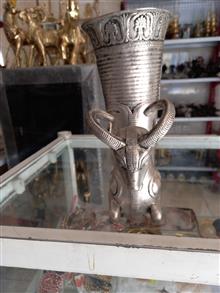 جام ریتون مسی ابکاری نقرهای طرح قوچ باطراحی بینظیر ودرجه1 اندازه 22سانت دکوری وکلکسیونی هدیه وکادوی ماندگار