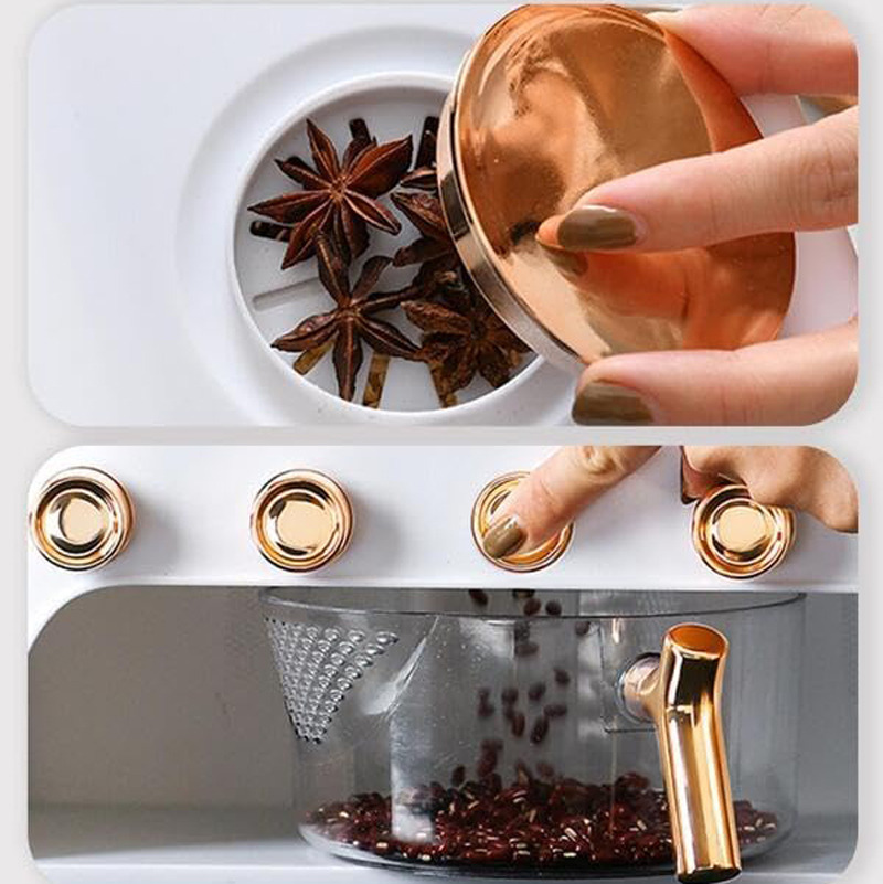 - محفظه مجزا طراحی شده بر روی درب کالا برای جای دادن میخک ، حبه سیر و ... جهت نگهداری حبوبات به دور از آفات و حشره ها