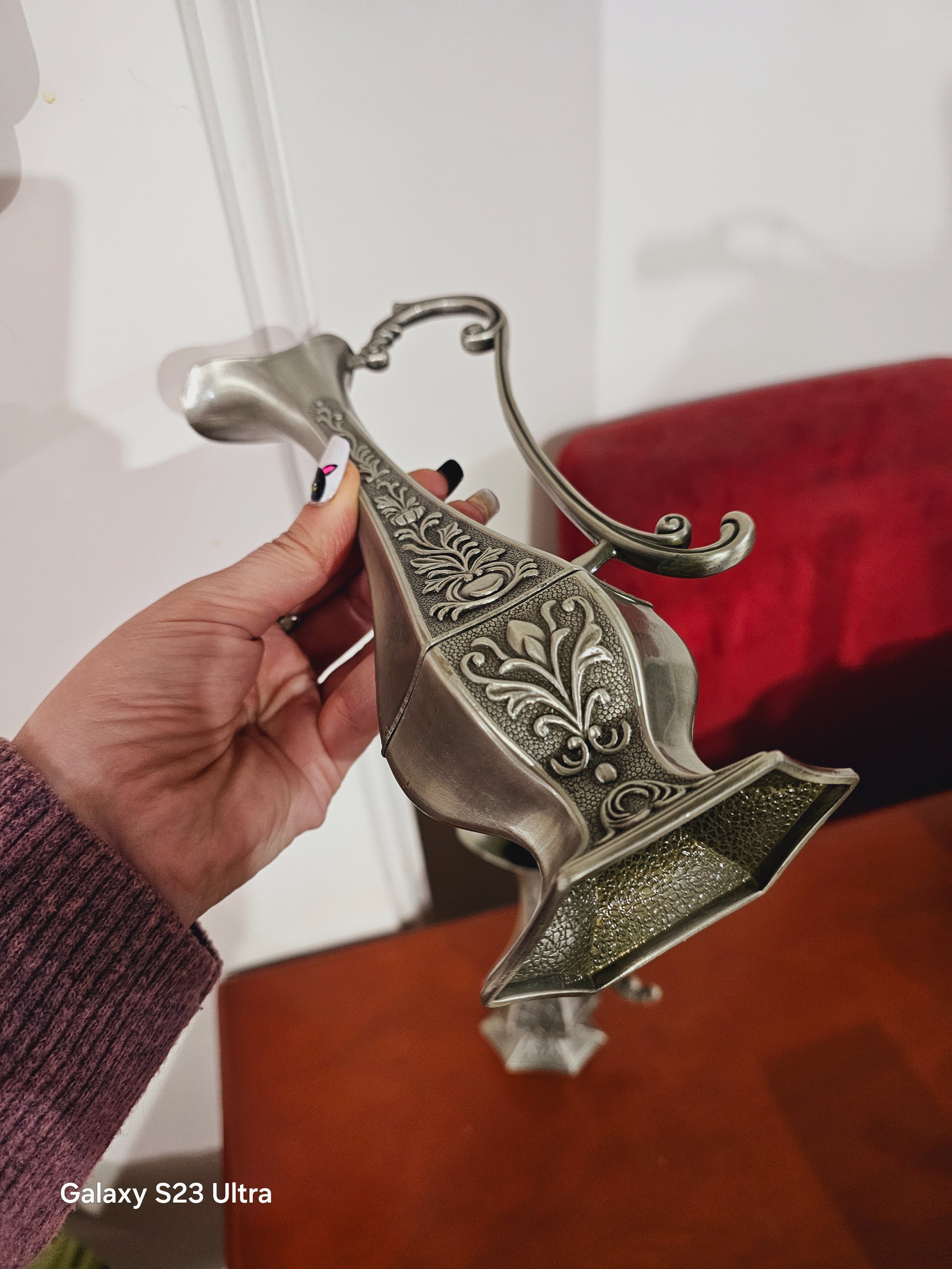 دوعدد گلدان زیبای پیوتر 23 سانتی زیبا تمییز و نو مناسب جهزییه