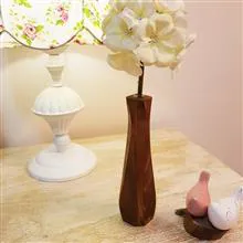 گلدان چوبی مدل کاج ، محصولی با طراحی ظاهری مدرن و زیبایی خاص در عین سادگی است . این گلدان از نوع رومیزی و مناسب برای شاخه گل می باشد که از جنس چوب با کیفیت تولید شده است . یک چهار وجهی که از پایین به بالا باریک تر شده و زوایای 90 درجه آن با برش از بین رفته و جلوه ای خاص را برای آن پدید آورده است . درون گلدان ، حفره ای استوانه ای شکل وجود دارد که در آن محفظه ای لوله ای جای داده شده تا علاوه بر قرار گرفتن یک یا حداکثر دو شاخه گل قابلیت حفظ مقداری آب را درون خود داشته باشد . گلدان چوبی رومیزی طرح کاج در سه رنگ قهوه ای تیره ، قهوه ای روشن و کرم ارائه می شود که می توان برای تزیین روی میزهای مختلف در منزل ، محیط های کاری ، کافی شاپ ها ، رستوران ها و .... از آنها استفاده نمود .
