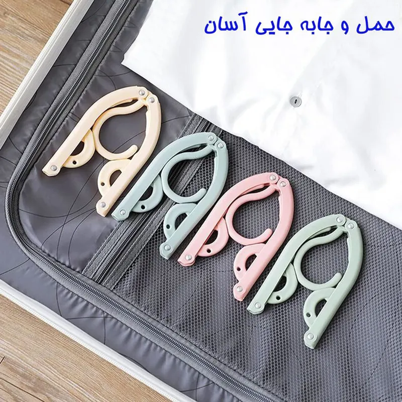 چوب لباسی تاشو مسافرتی ، نمونه ای جدید با ویژگی های منحصر به فرد که می تواند به سادگی نیاز کاربر خود را پاسخ دهد . آویز لباس تاشو تولید شده از جنس پلاستیک فشرده مقاوم می باشد که شامل قلاب آویز و دو