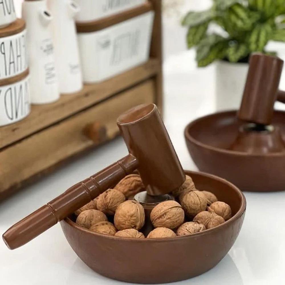 ظرف گردو شکن همراه با چکش ، دارای ظرف و چکش طرح چوب (تولید شده از جنس پلاستیک فشرده مقاوم) می باشد .