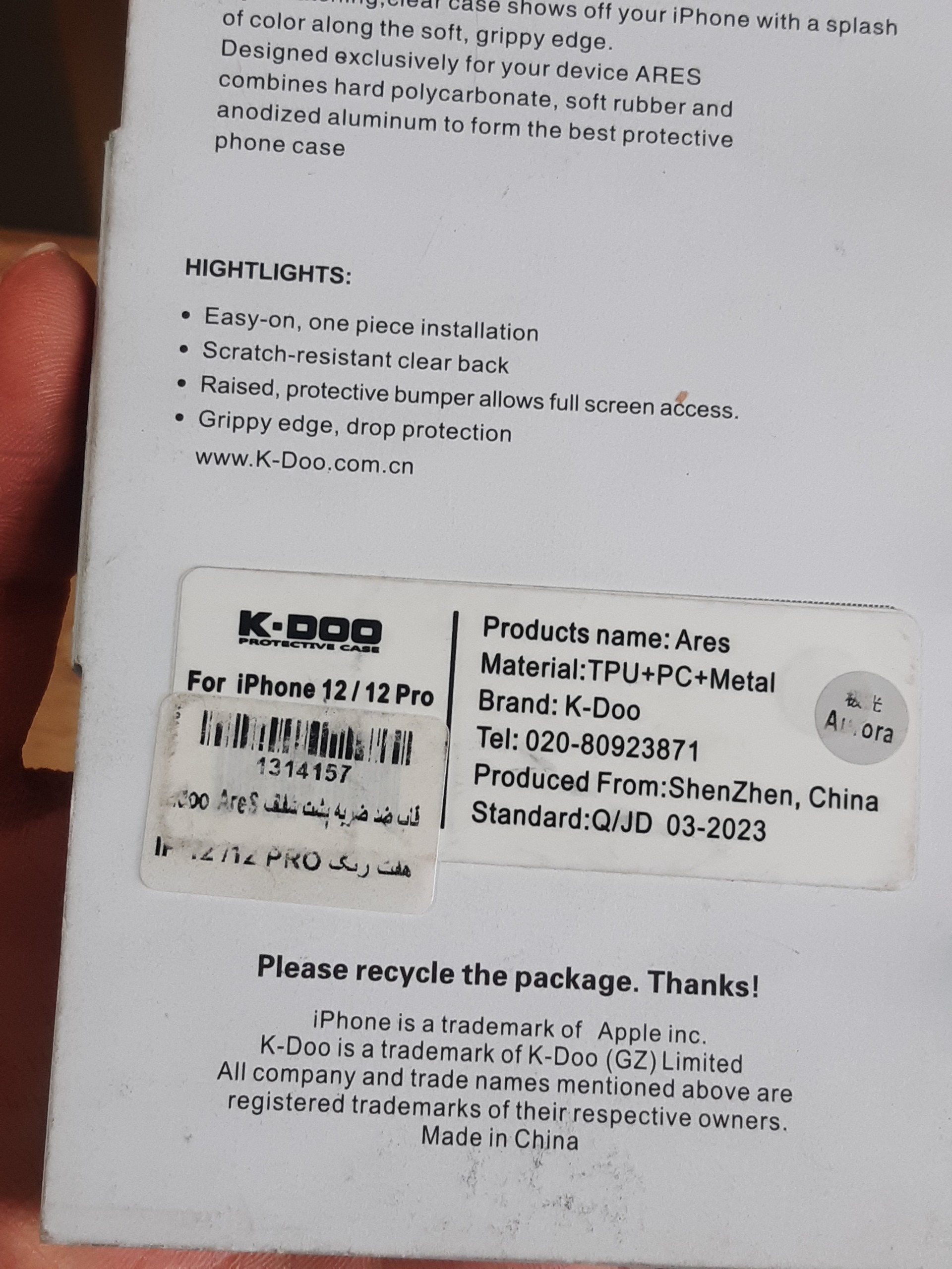 قاب ضد ضربه K.doo Ares آیفون iPhone 12 / 12 Pro