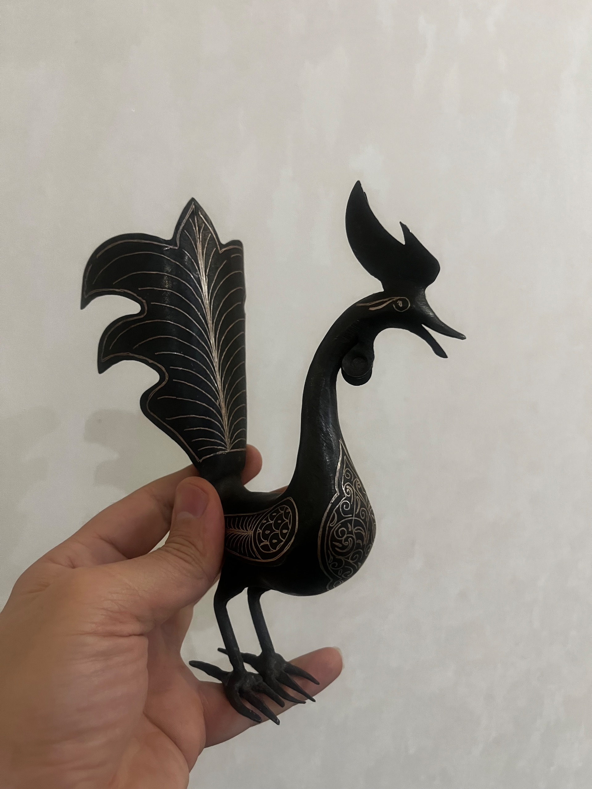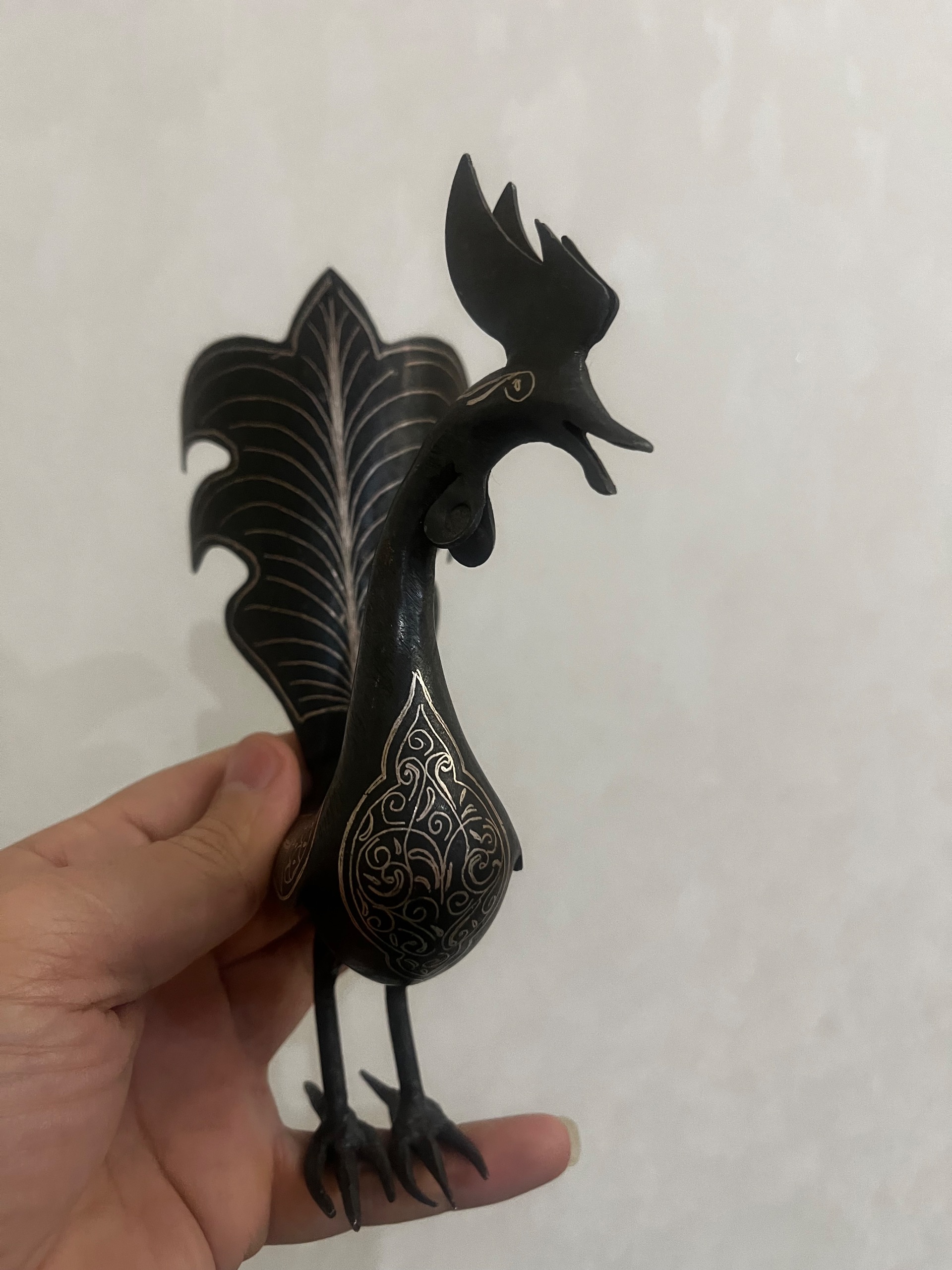 مجسمه خروس فولادی نقره کوب