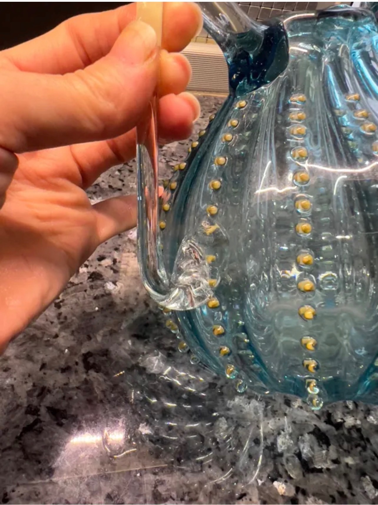 فقط تو عکس اخر دقت کنید کنار دسته یه ضایعه کوچیک هست بدنه ظرف نیست خوده دسته هست موقع درست کردن ظرف درست نساختن