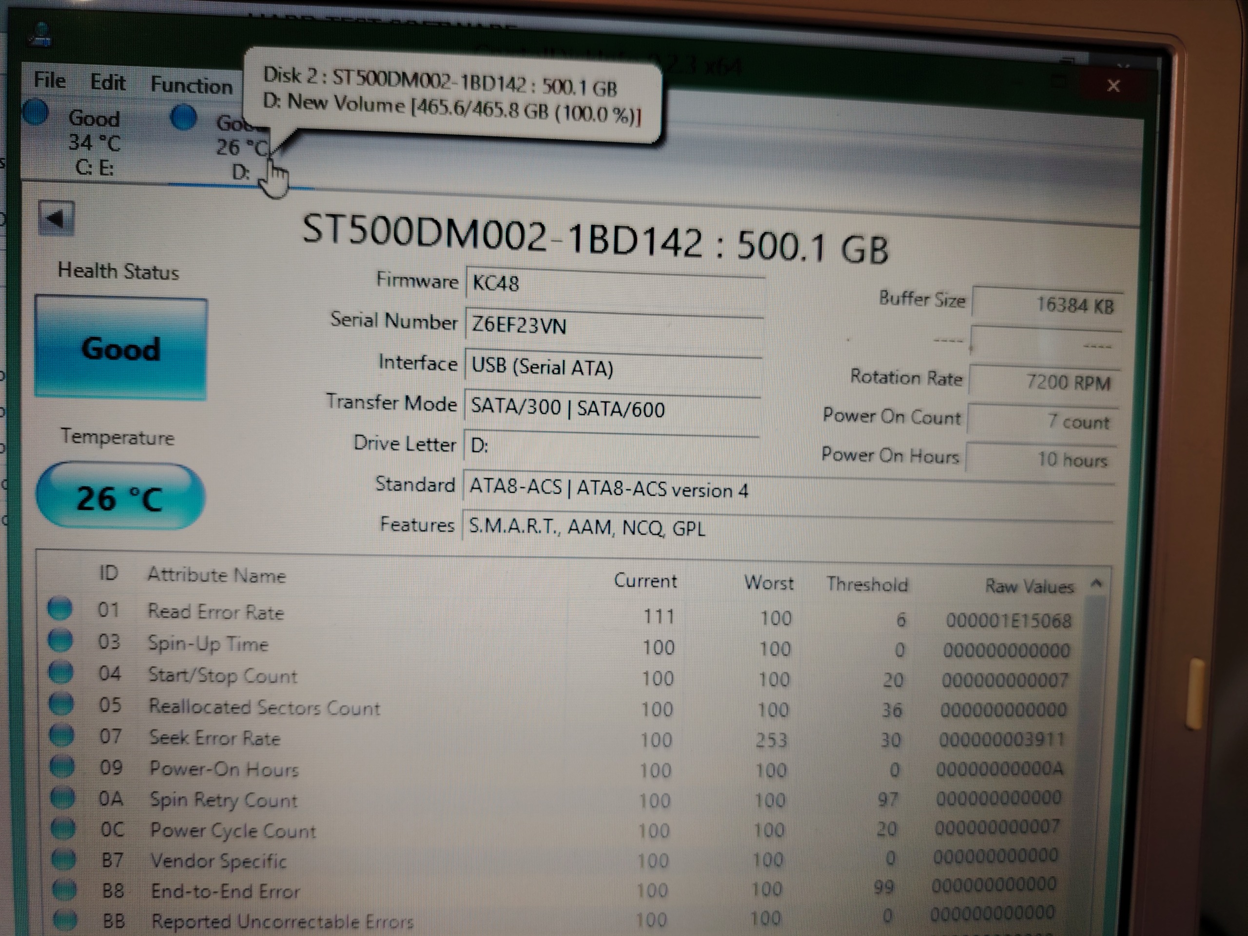 تصاویر تست سلامت هارد با دو نرم افزار مختلف گذاشته شده