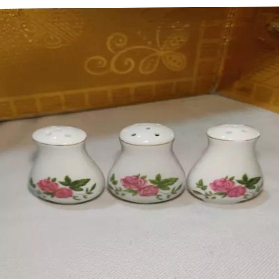 3عدد نمکدان گل سرخی قدیمی ساخت چین
