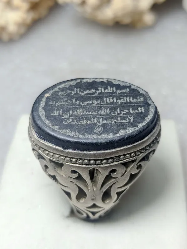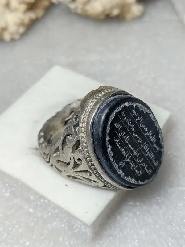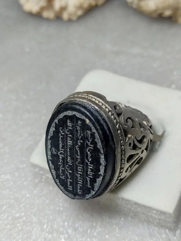 انگشتر یشم دودی باحکاکی عمیق آیه باطل سحر