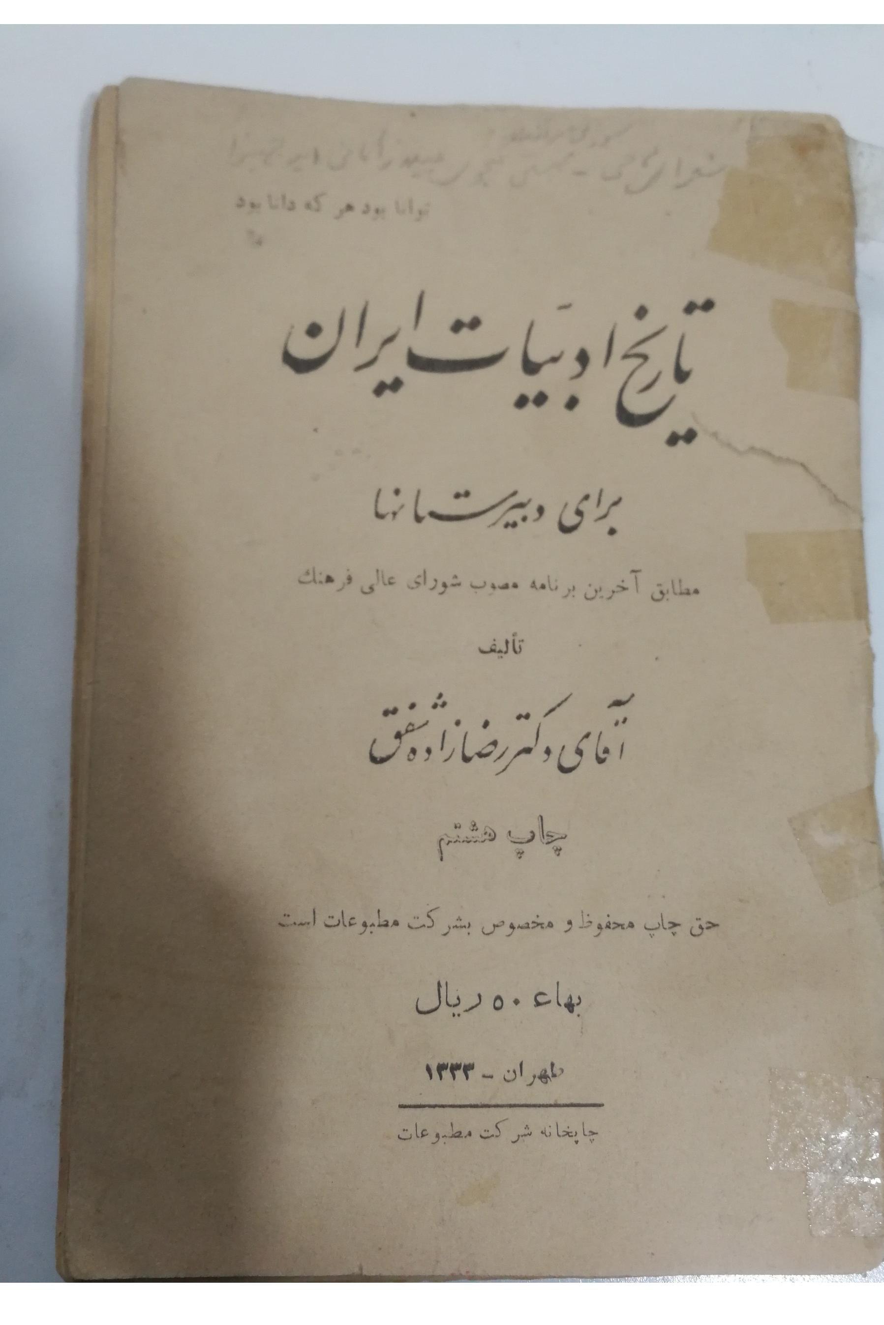 تاریخ ادبیات ایران چاپ 1333