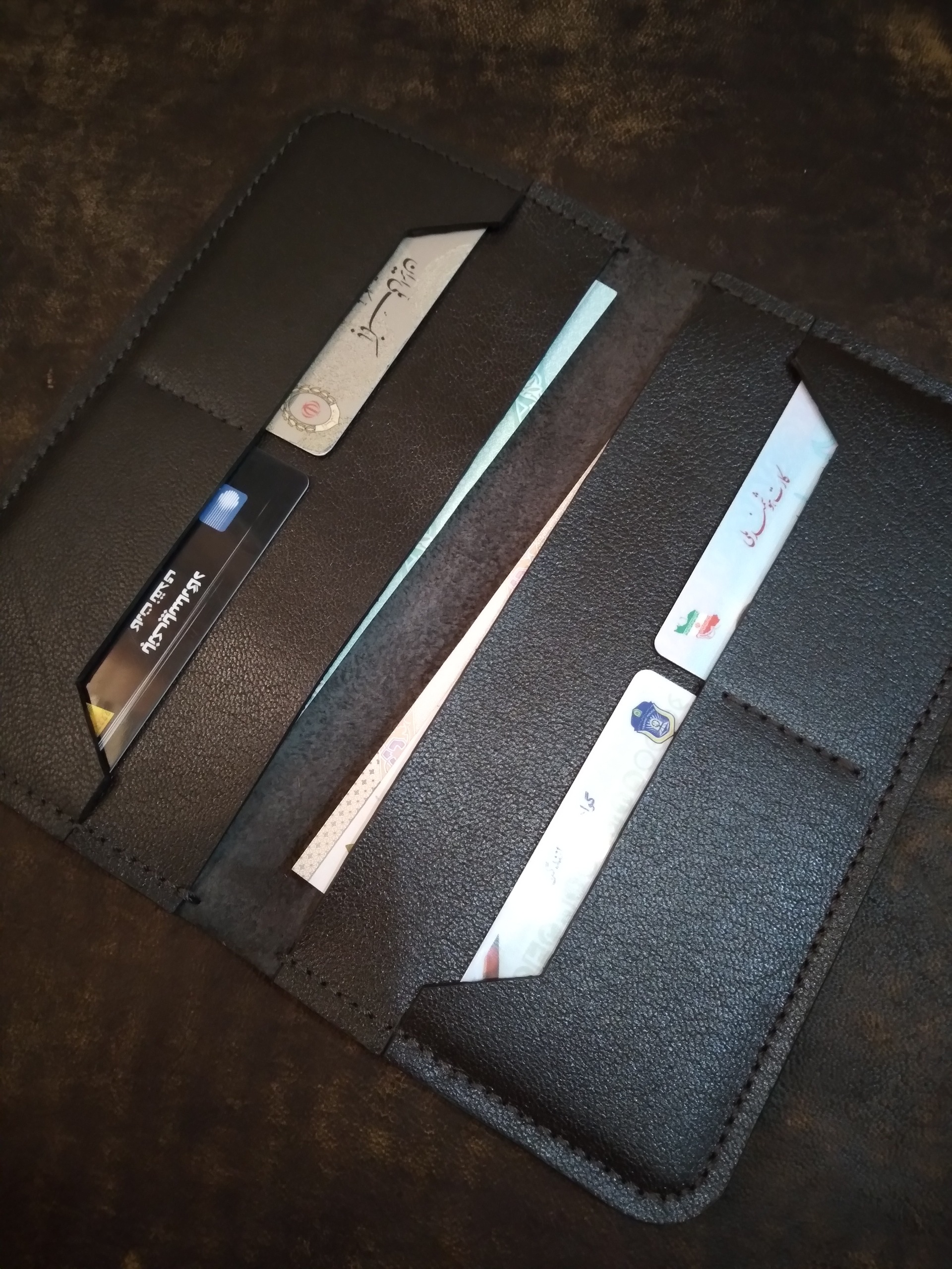 کیف پول مدل کتی چرم طبیعی دست دوز