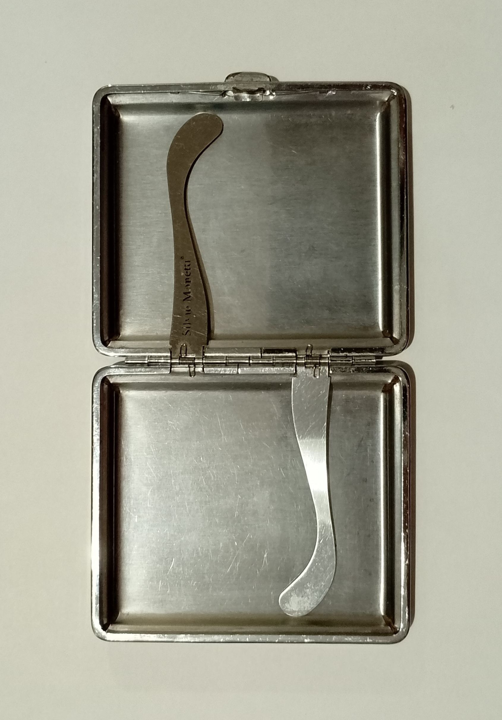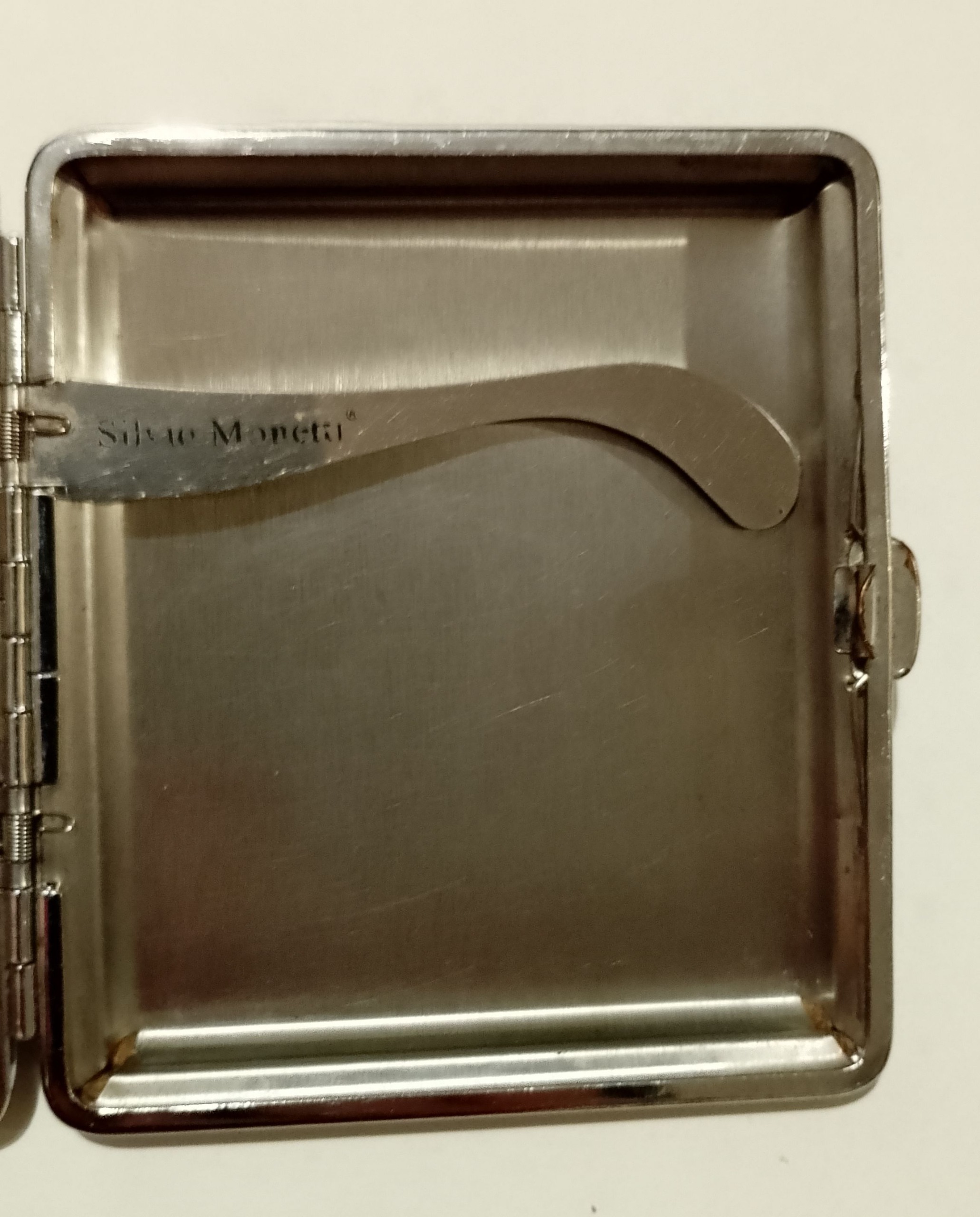 جاسیگاری Monetti استیلضدزنگ و با رویه چرم، در حد نو میباشد. فقط در هر طرف چرم روی گوشه جاسیگاری زدگی بر اثر استفاده وجود دارد که در تصویر قابل مشاهده است.