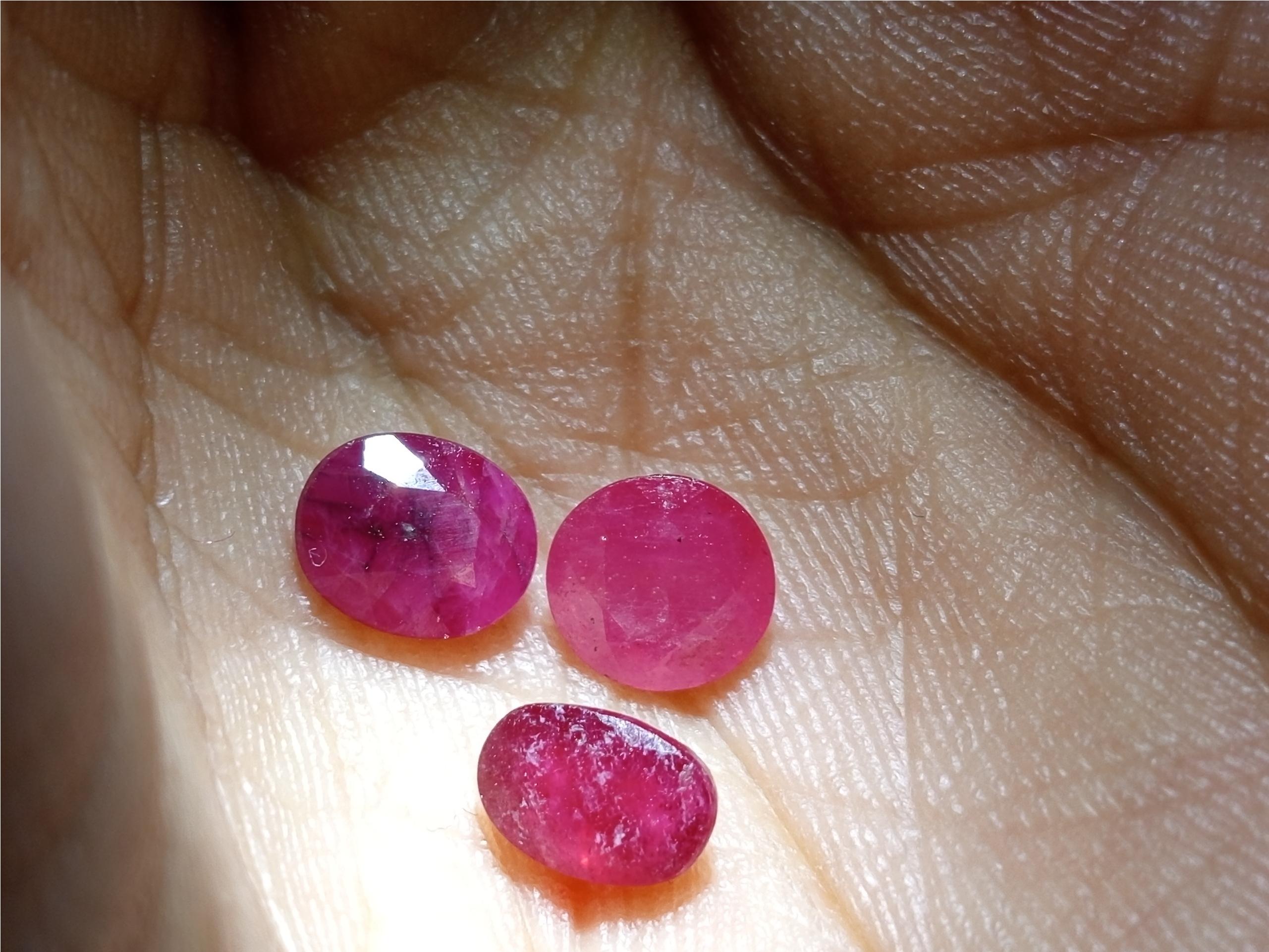 سه قطعه نگین کوچک از جنس یاقوت سرخ طبیعی و معدنی بدون بهسازی مال کشور های مختلف کیفیت متوسط
