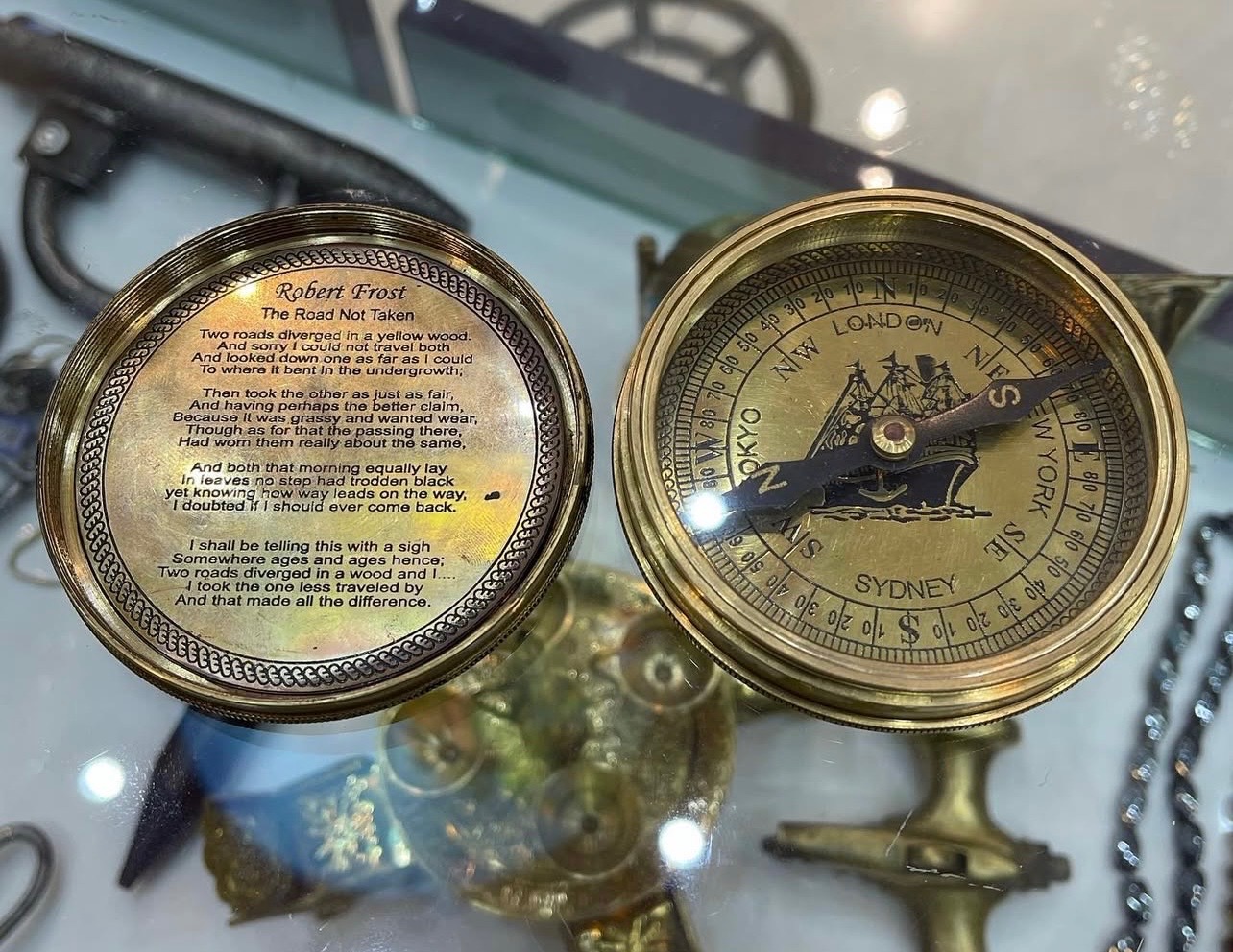 قطب نمای رومیزی و جیبی برنجی خارجی قدیمی