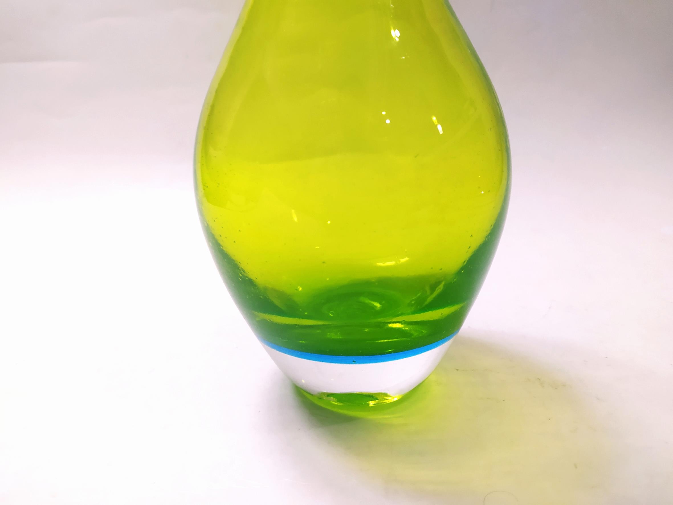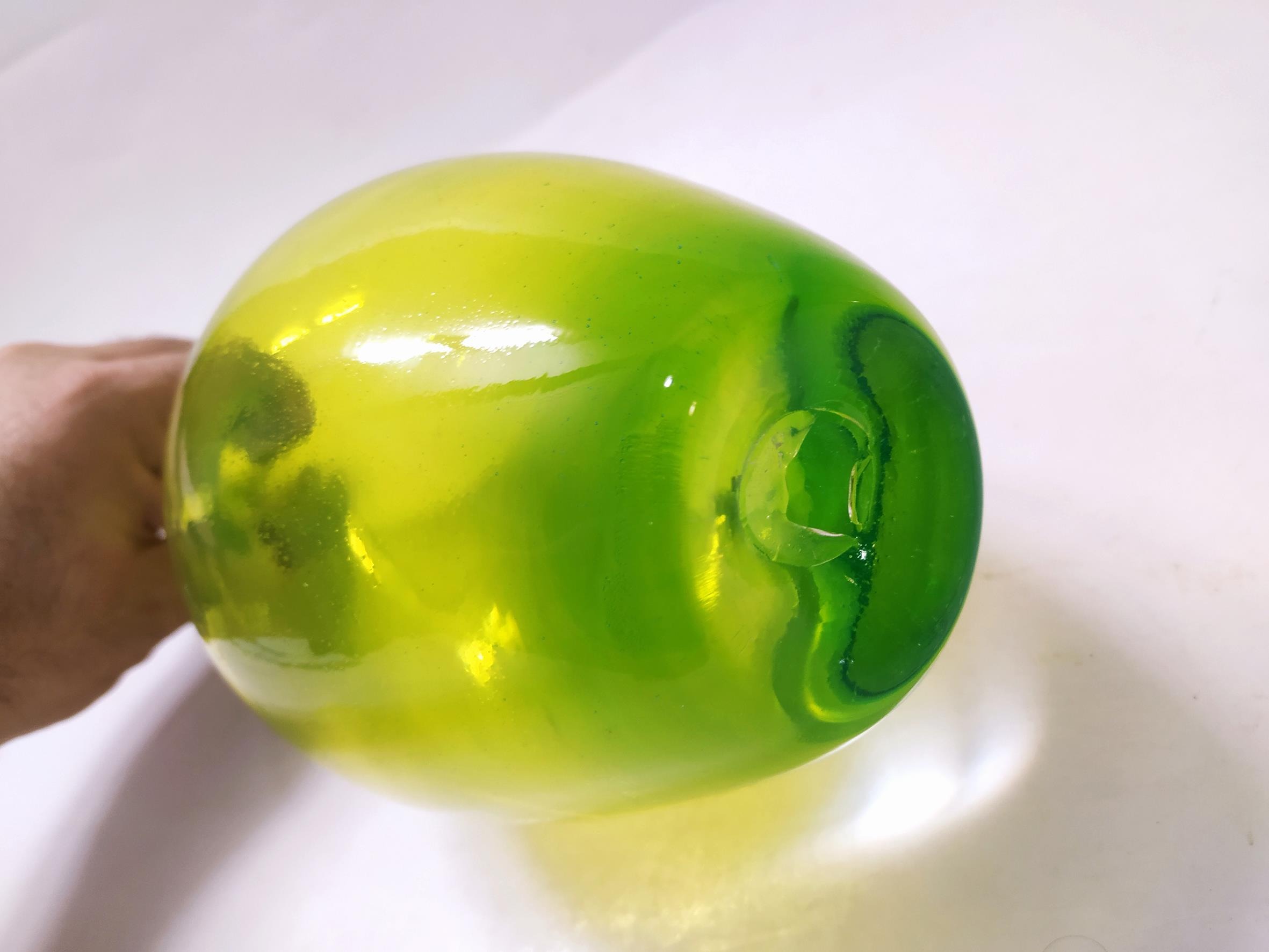 کاملا دست ساز است است و دو پوست که لایه داخلی سبز فسفری و لایه بیرونی بیرنگ است و جلوه بسیار زیبایی دارد و به حالت دمیدن شیشه درست شده است است