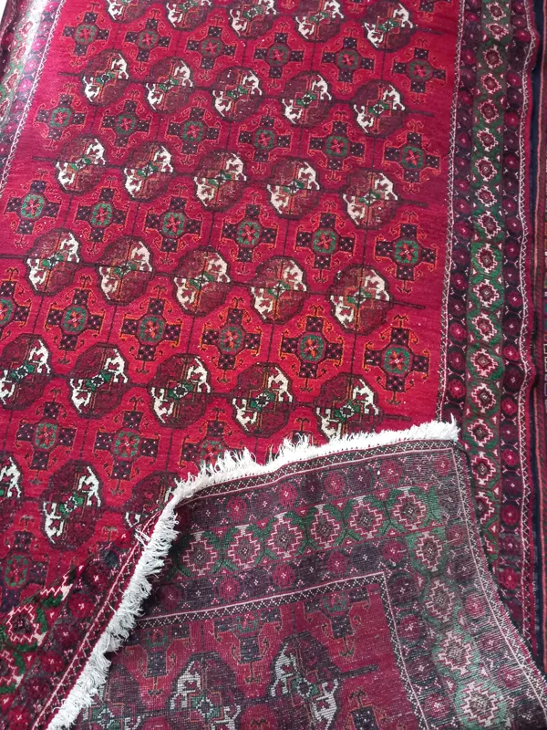 قالیچه باریکه دستباف قدیمی پشمی طرح ترکمن کاملا رنگ گیاهی ابعاد 130×280