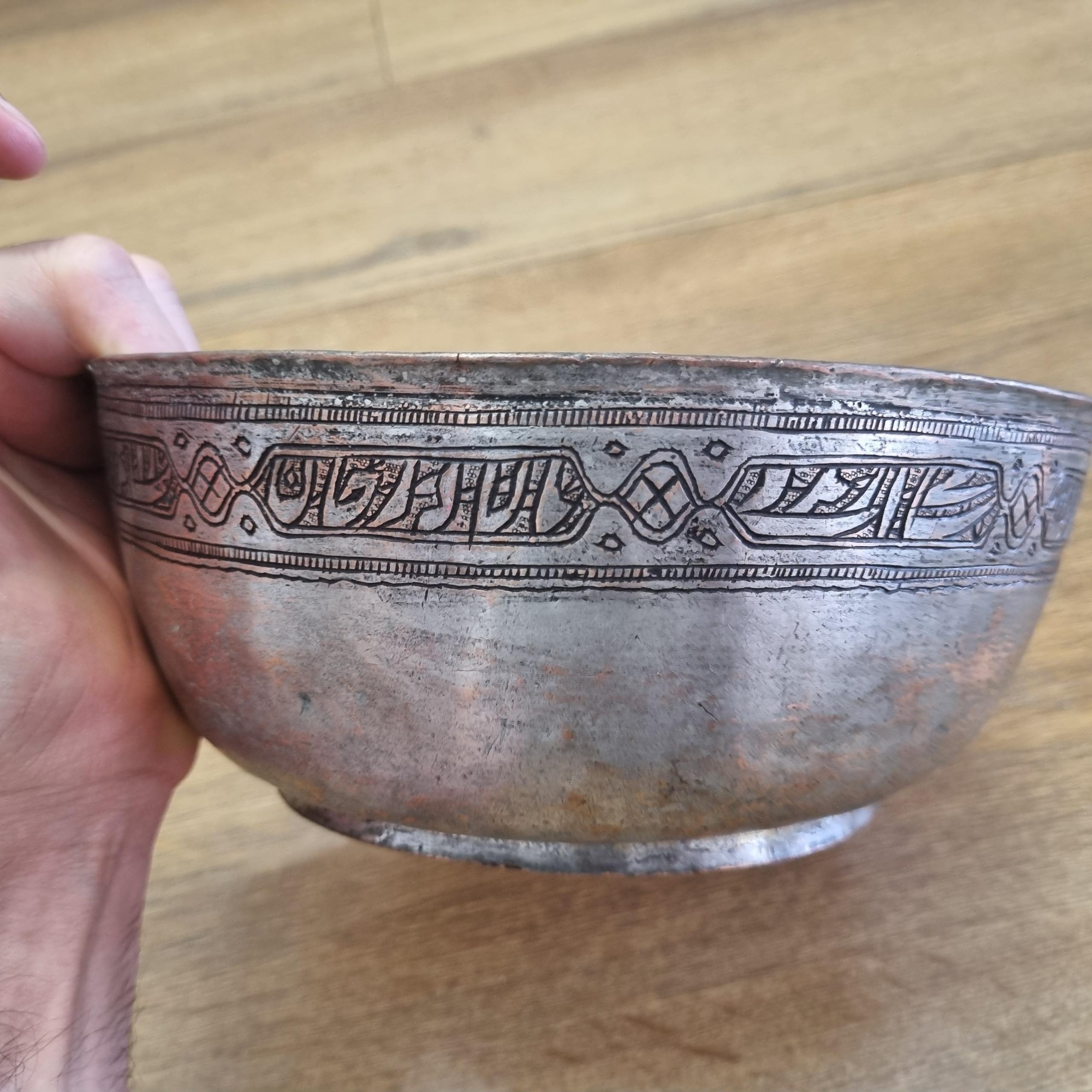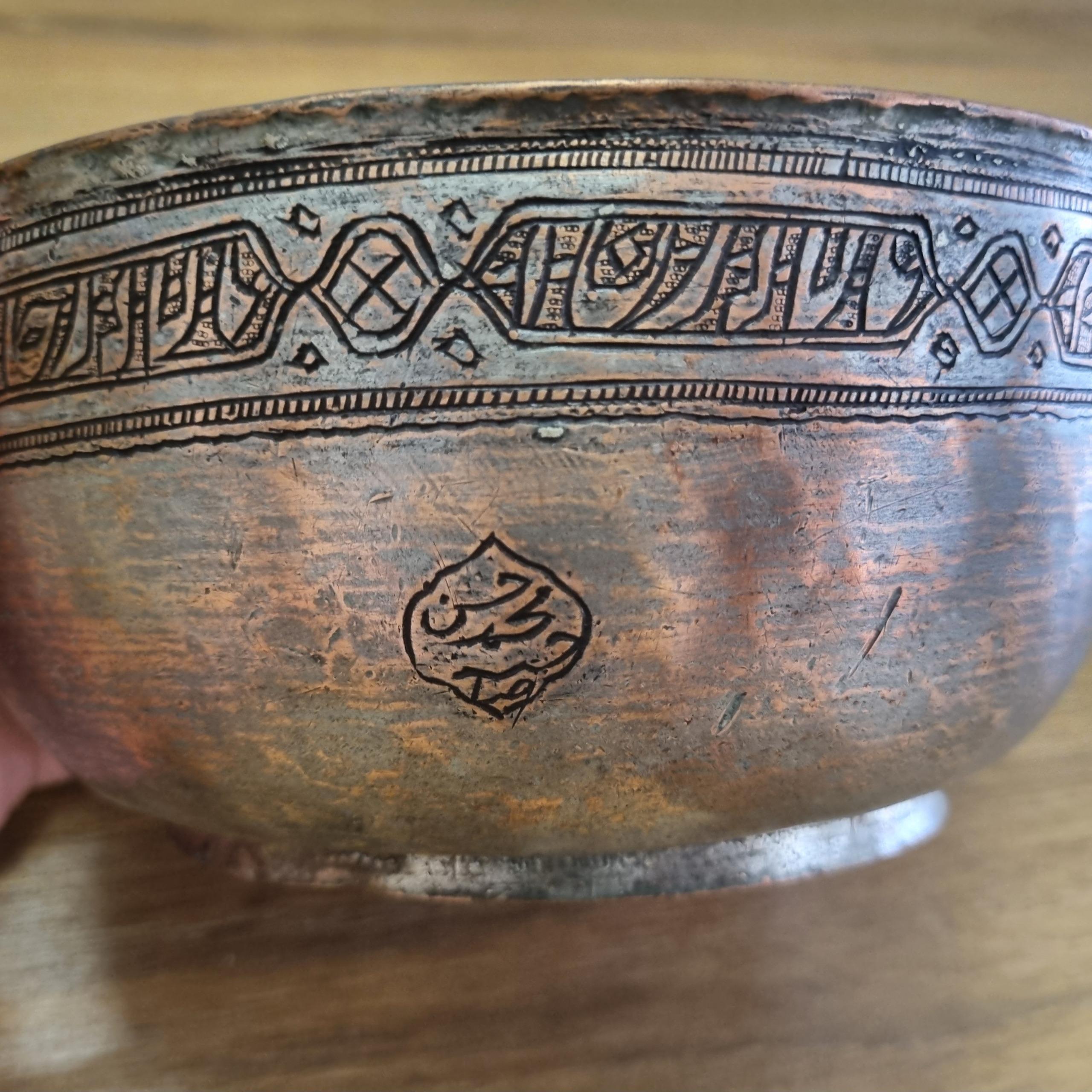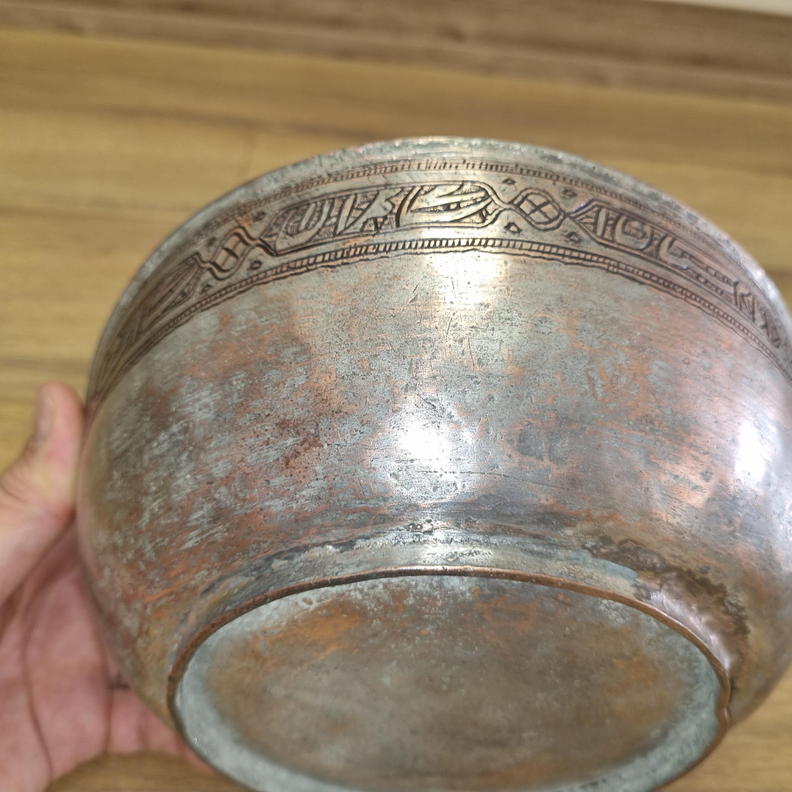 کاسه مسی قاجاری قلمزنی صاحبه دار سایز بزرگ و بکر