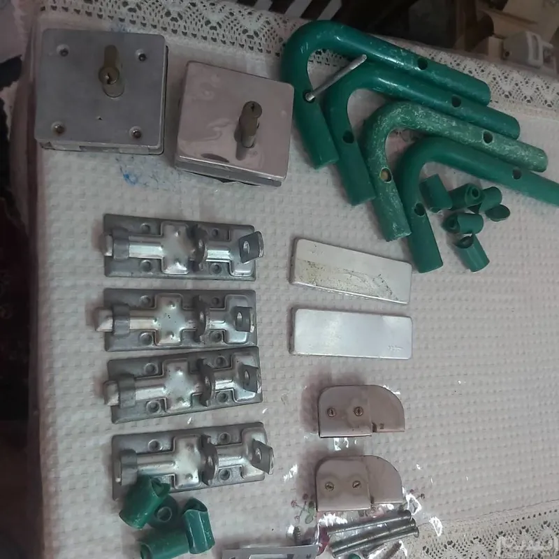 کلیه یراق آلات مربوط به شیشه سکوریت میباشد که بعضی نو وبقیه دست دوم هستند که در کل در حد نو زدم