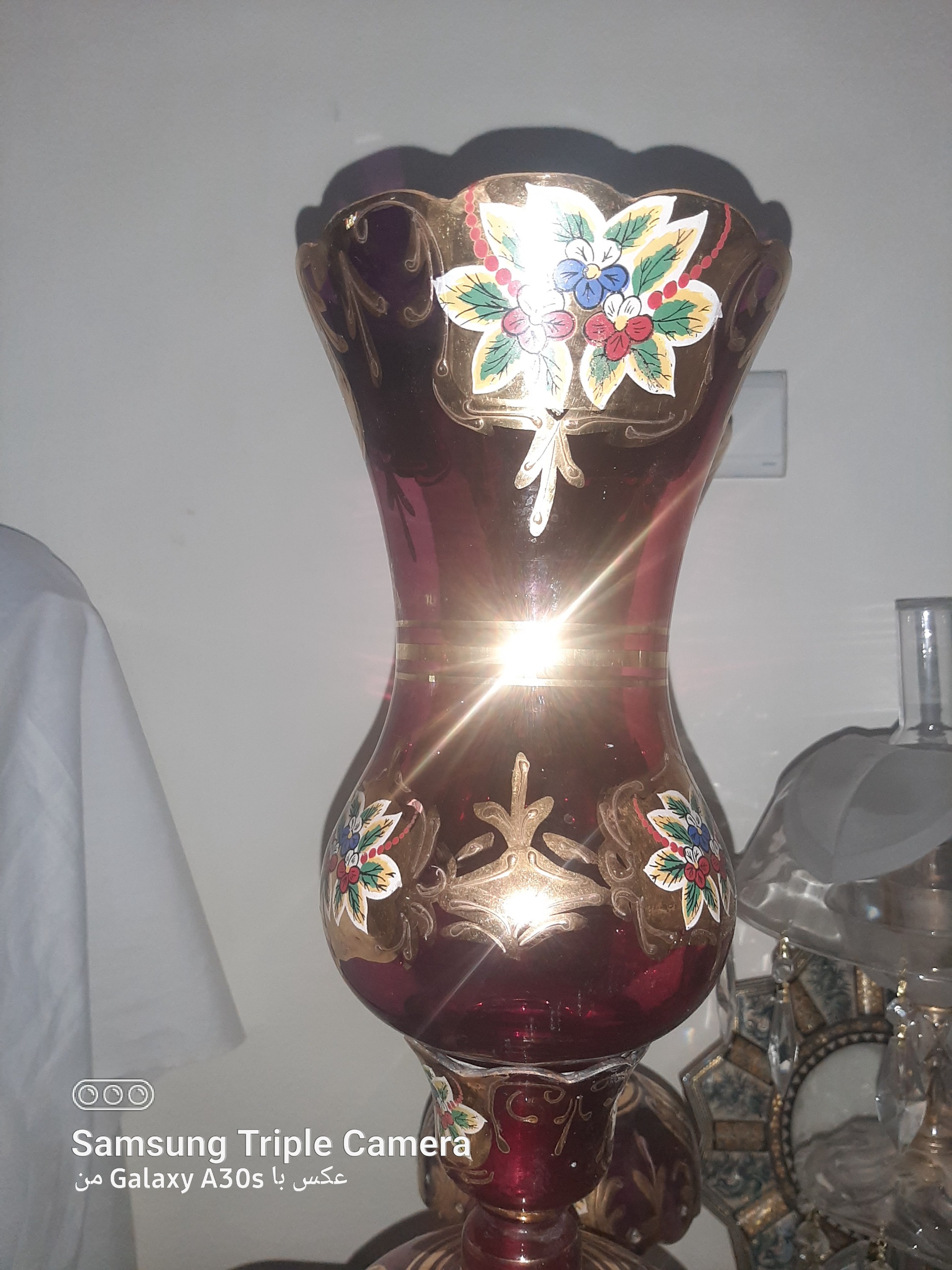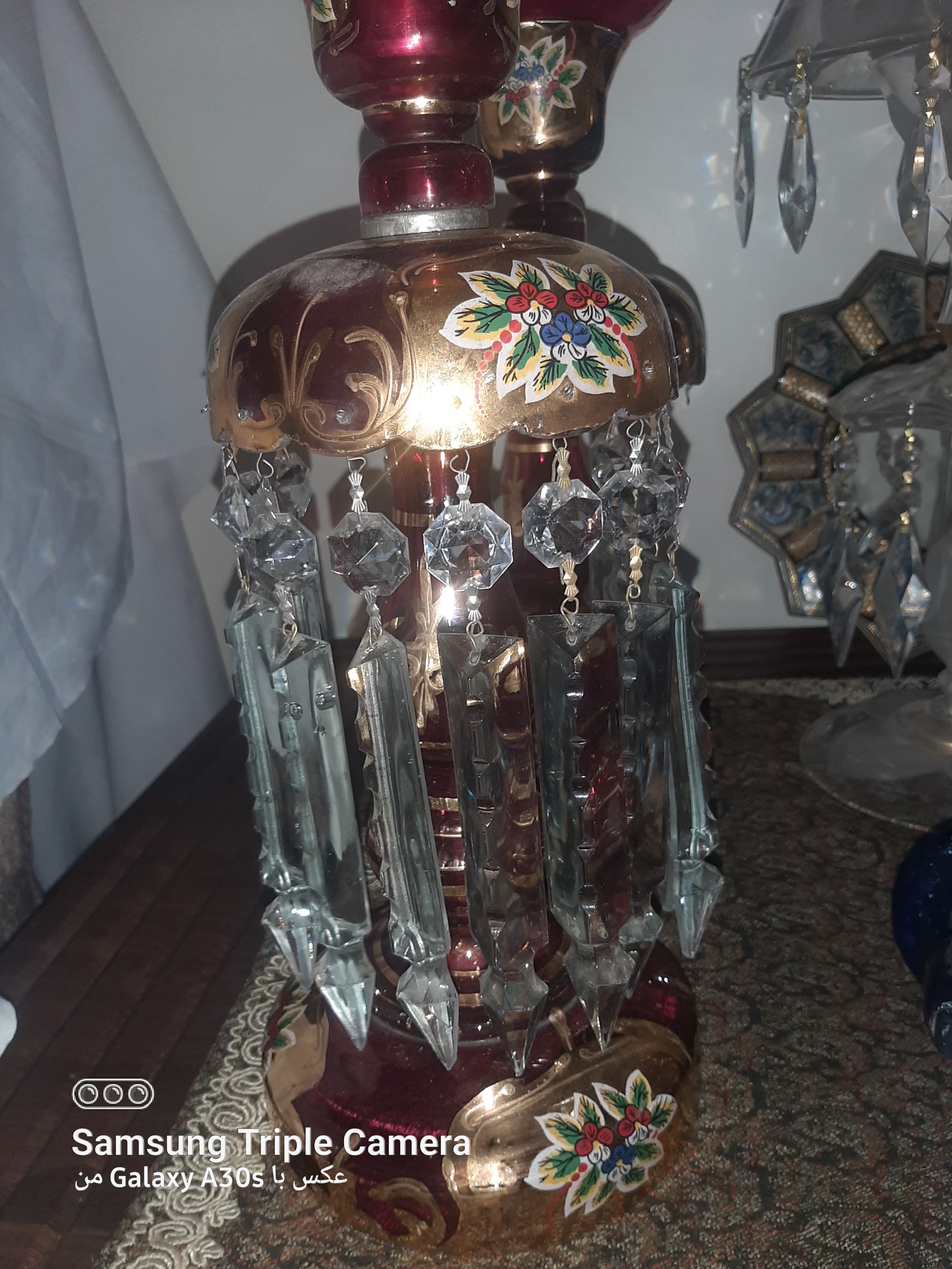 جفت چراغ لاله قدیمی 16 آویز طرح چک رنگ قرمز