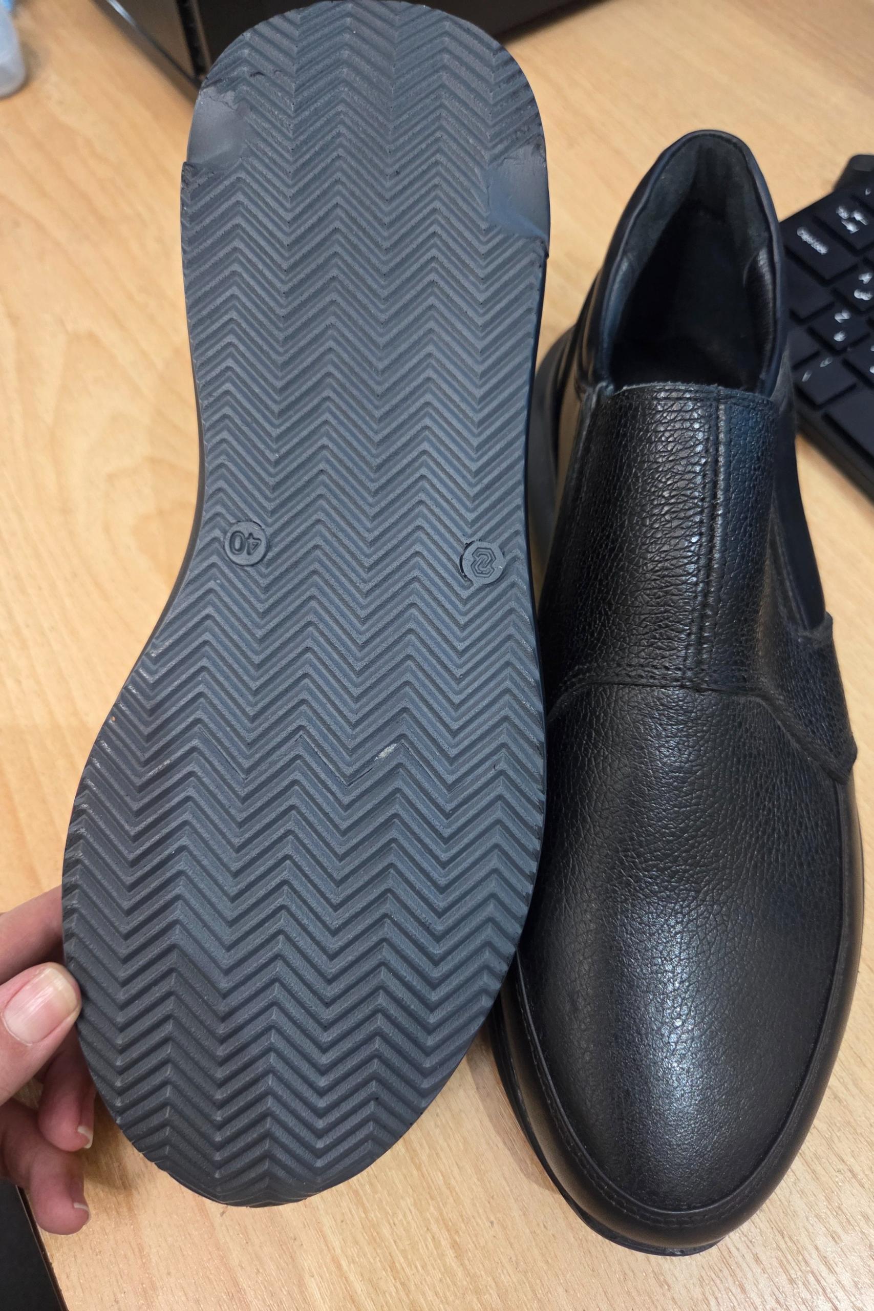 * این کفش تمام چرم طبیعی گاوی مشکی و سایز 40 است که با توجه به اینکه قالب کفش ترک هست مناسب تا 41 میباشد