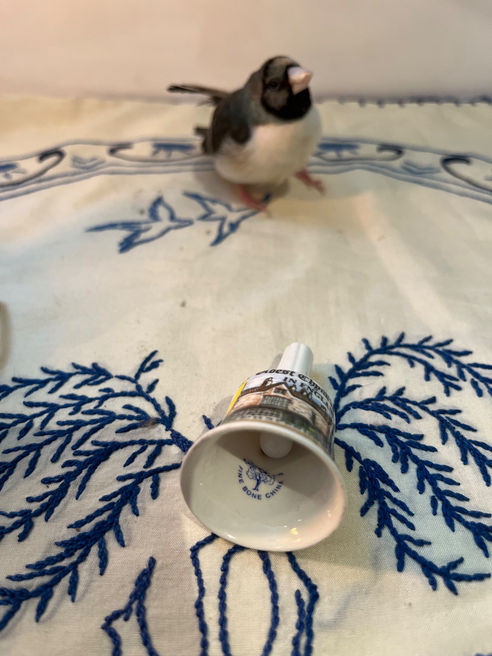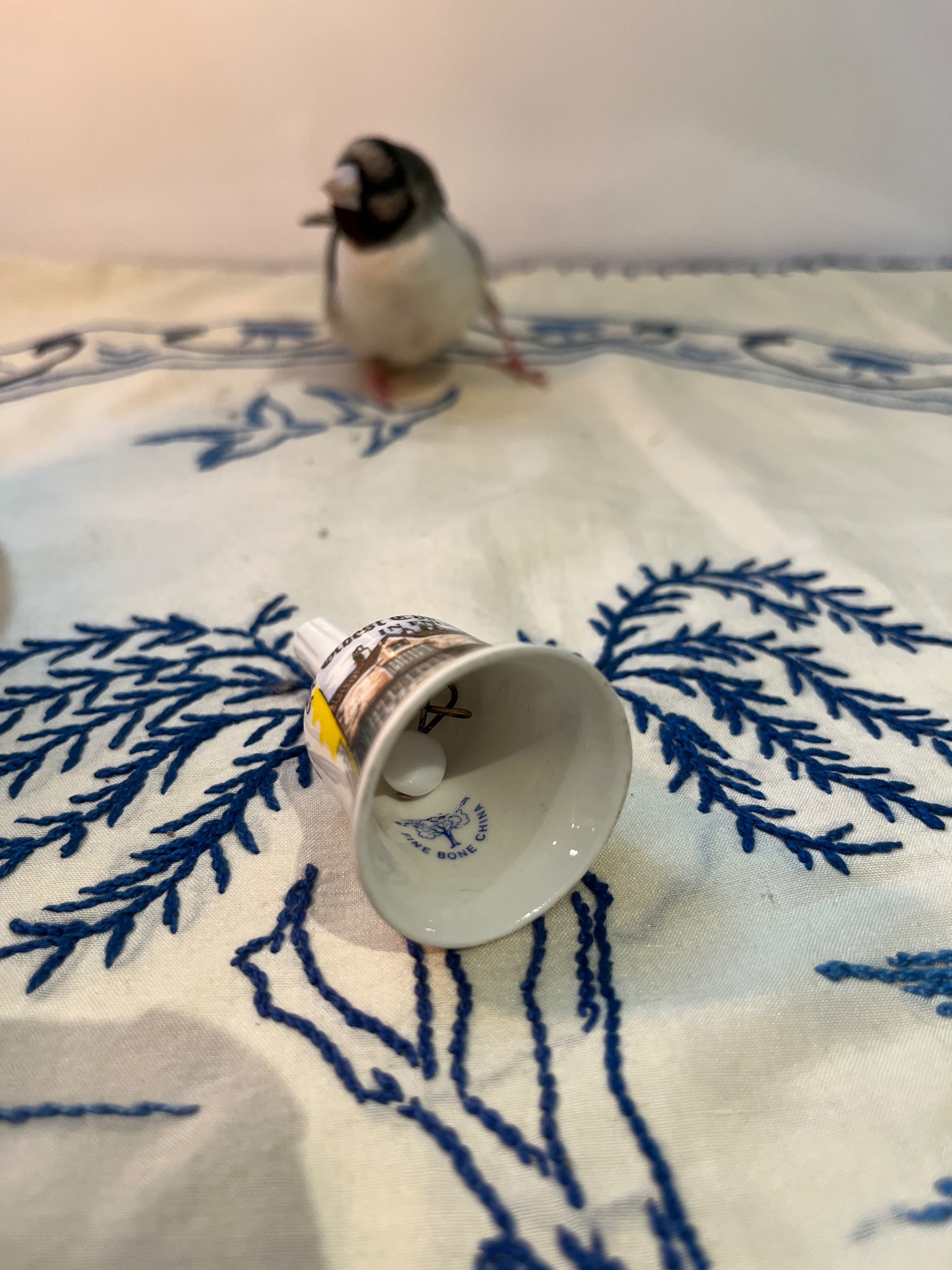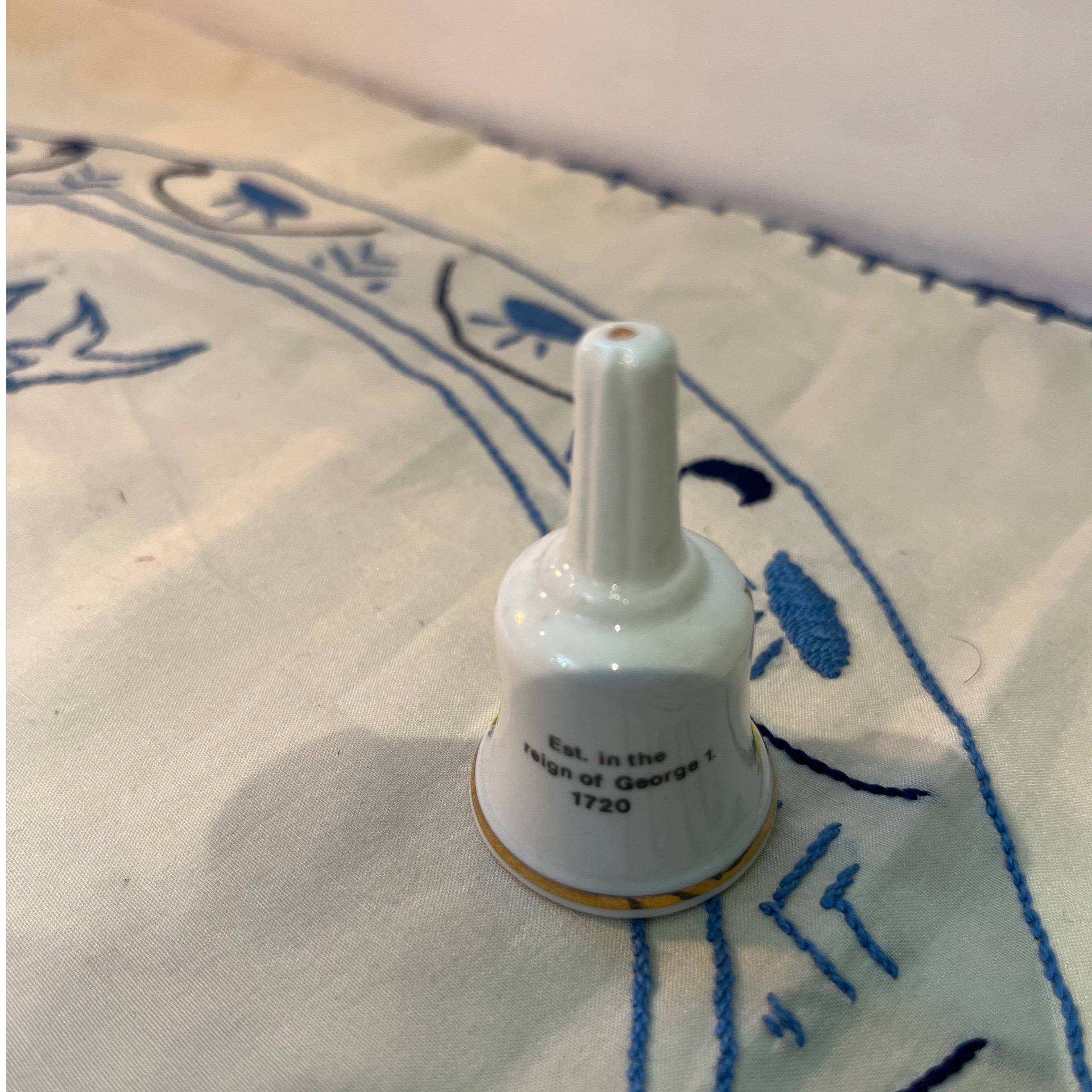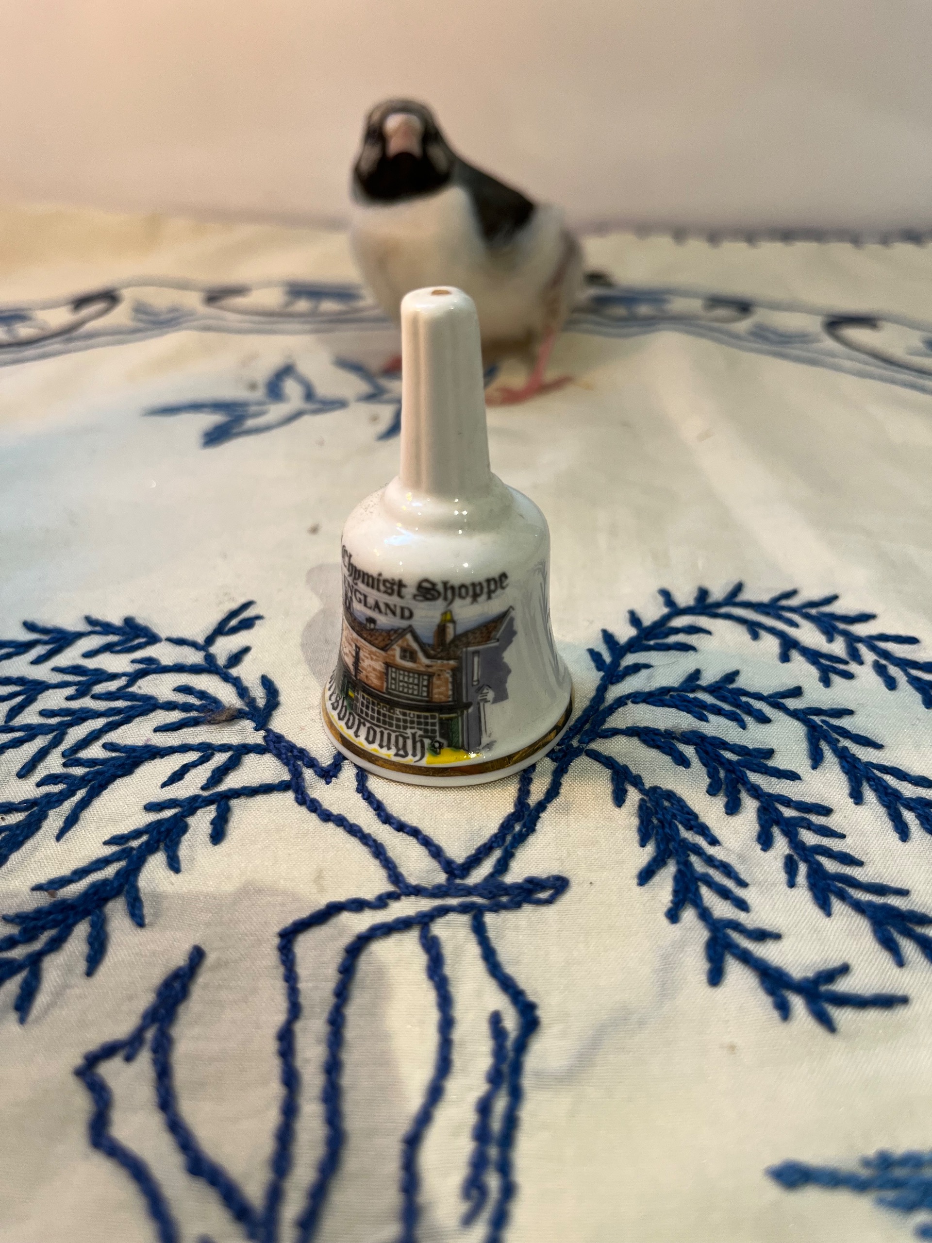 زنگوله قدیمی انگلیسی مارک حک شده BONE CHINA با طرح ساختمان داروسازی لندن با ارتفاع کار 6 سانتی متر