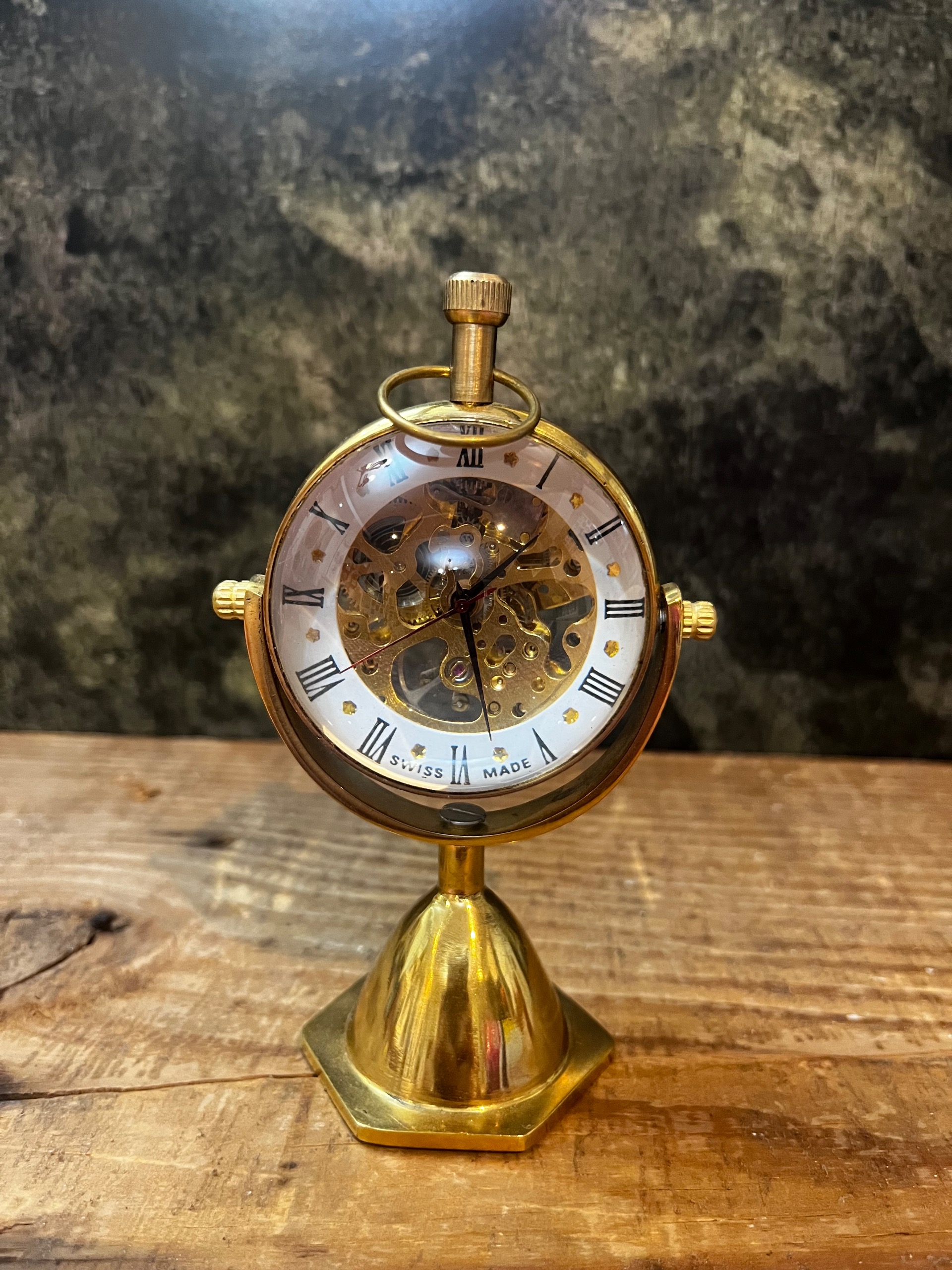 ساعت رو میزی کوکی طلایی از جنس برنز با قابلیت تنظیم دید ساعت و صفحه خاص محدب با ارتفاع 12 سانت
