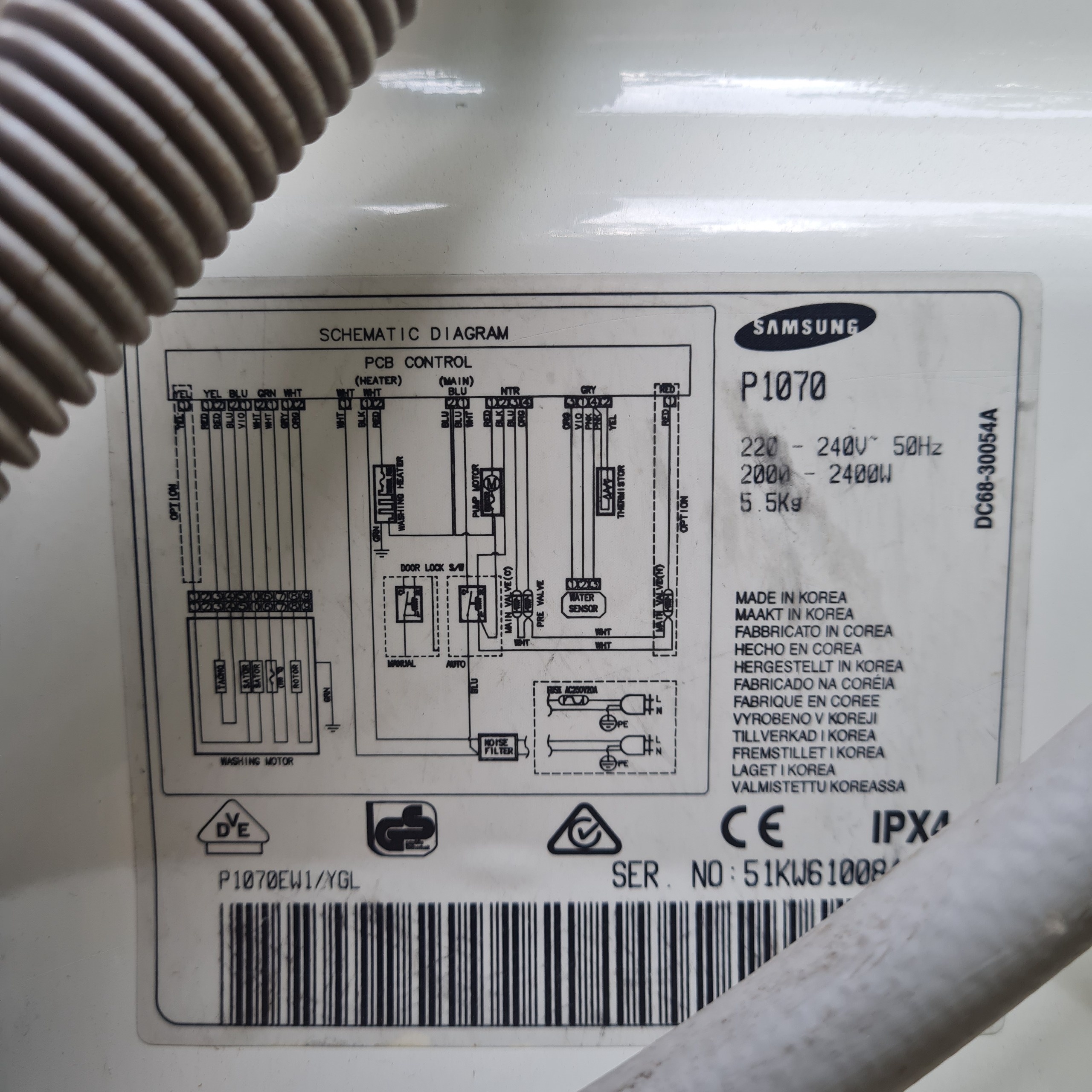 ماشین لباسشویی Samsung سامسونگ P1070 ساخت کره