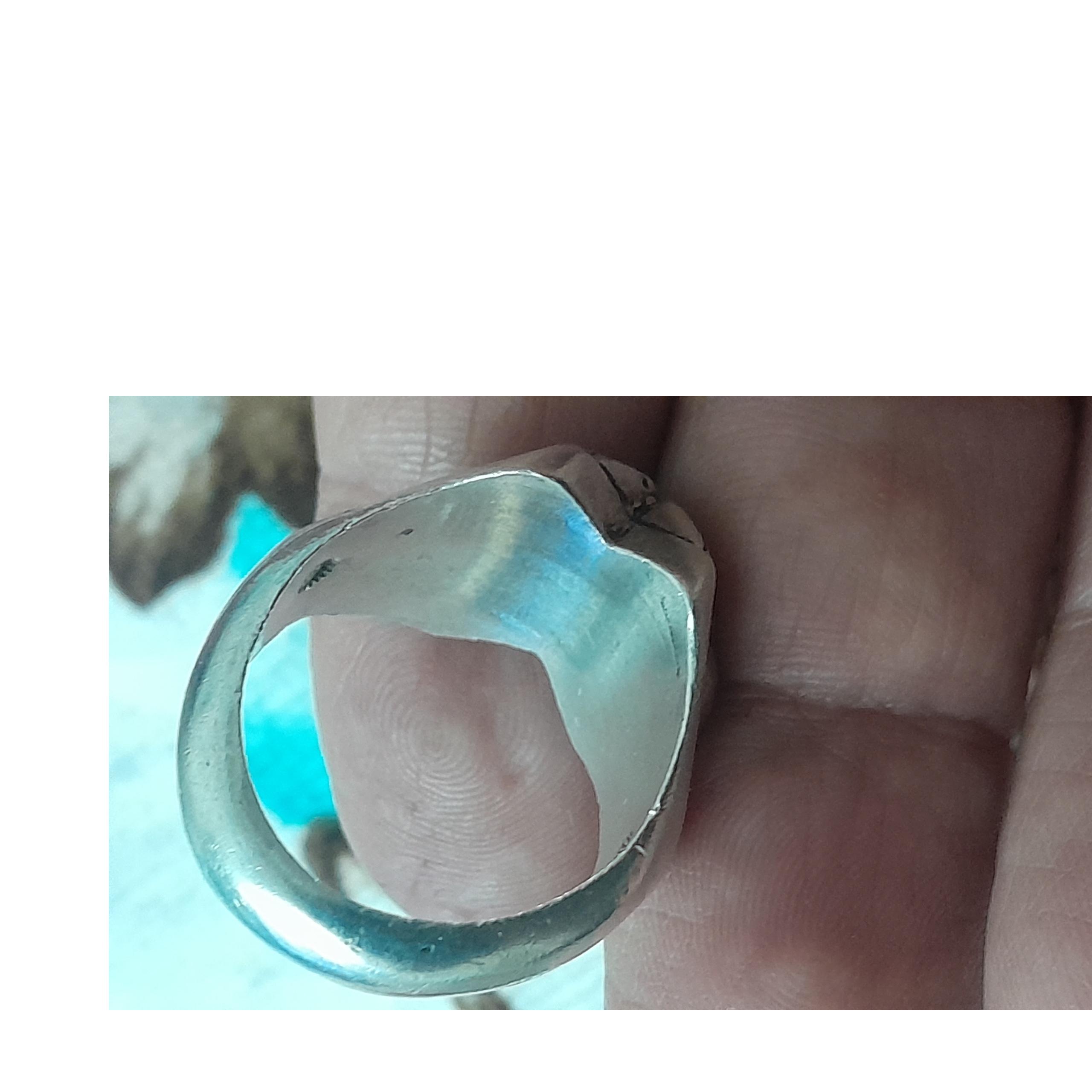 انگشتر نقره دست ساز  کاری کهنه وبی نظیر سنگش سختیش 10هست ذعال دار هست وزن17 گرم