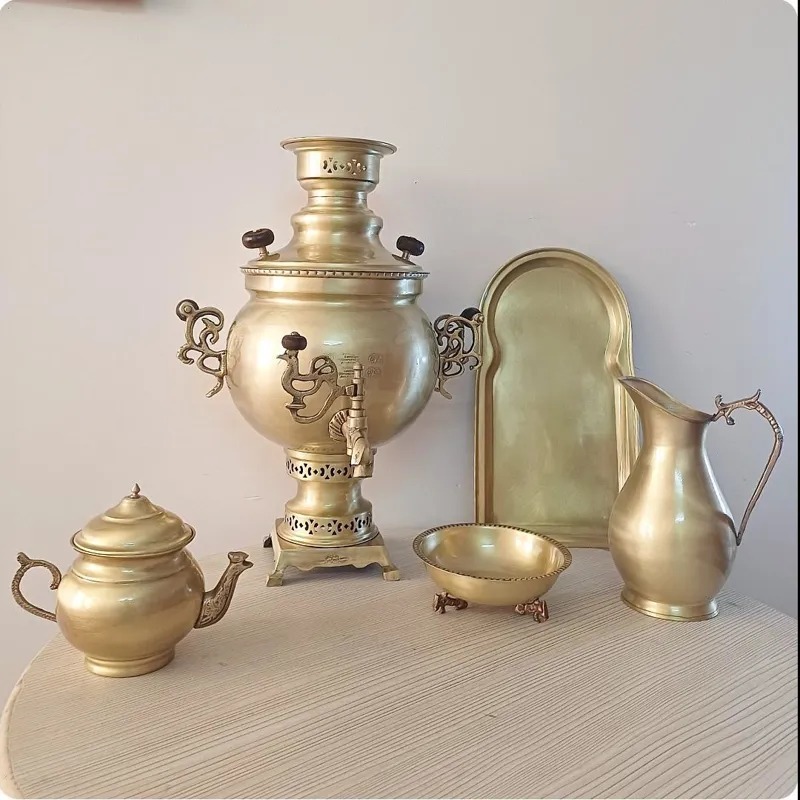 سرویس سماور زغالی تمام برنجی سایز 6لیتری 6پارچه