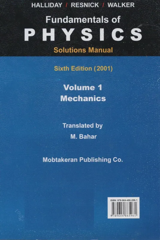 حل مسائل مبانی فیزیک جلد اول مکانیک وویرایش ششم 2001