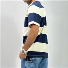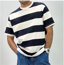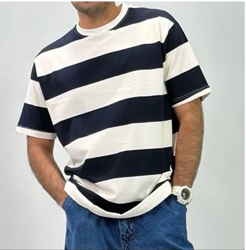 تیشرت یقه گرد سفید سورمه ای راه راه البته سایز دوایکس لارج سفید و کرم راه راه است تمام نخ برند معتبر BLACK SQUAD ساخت کشور بنگلادش