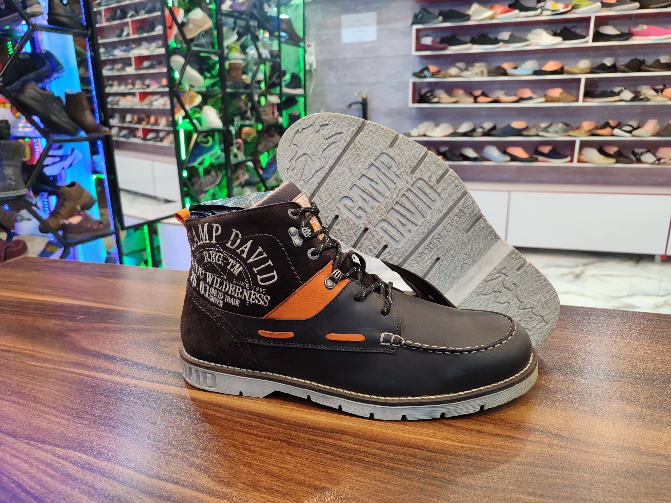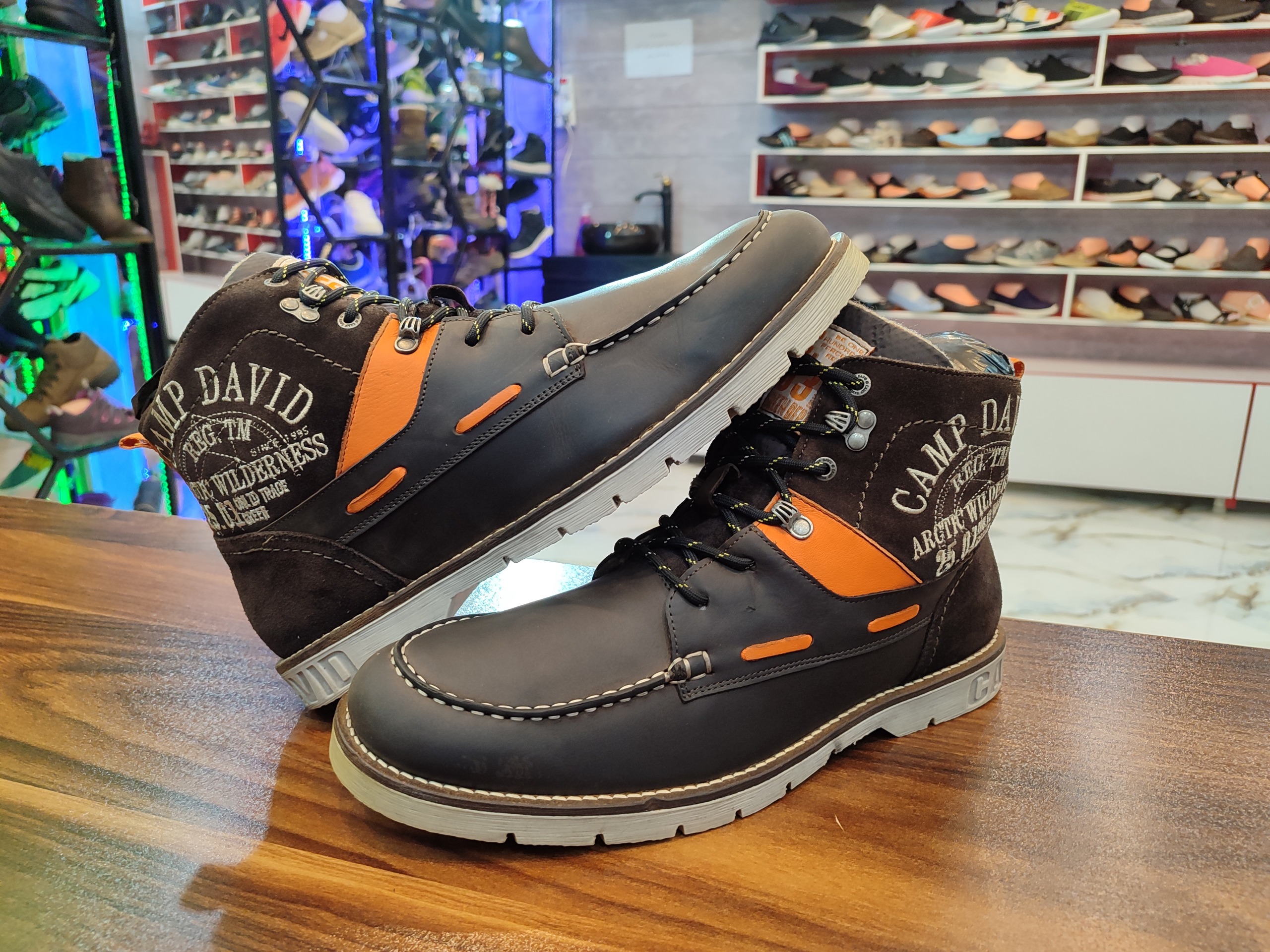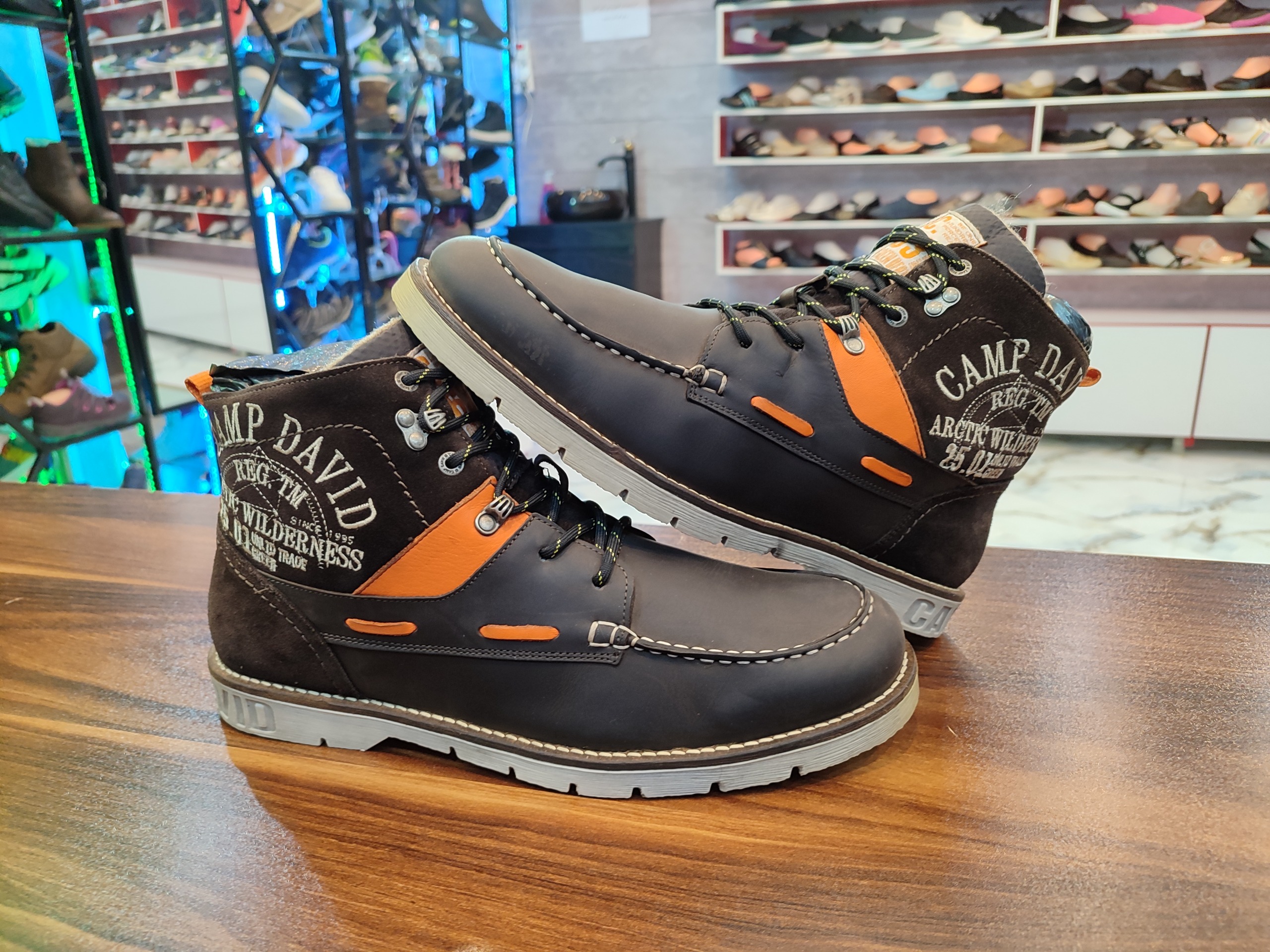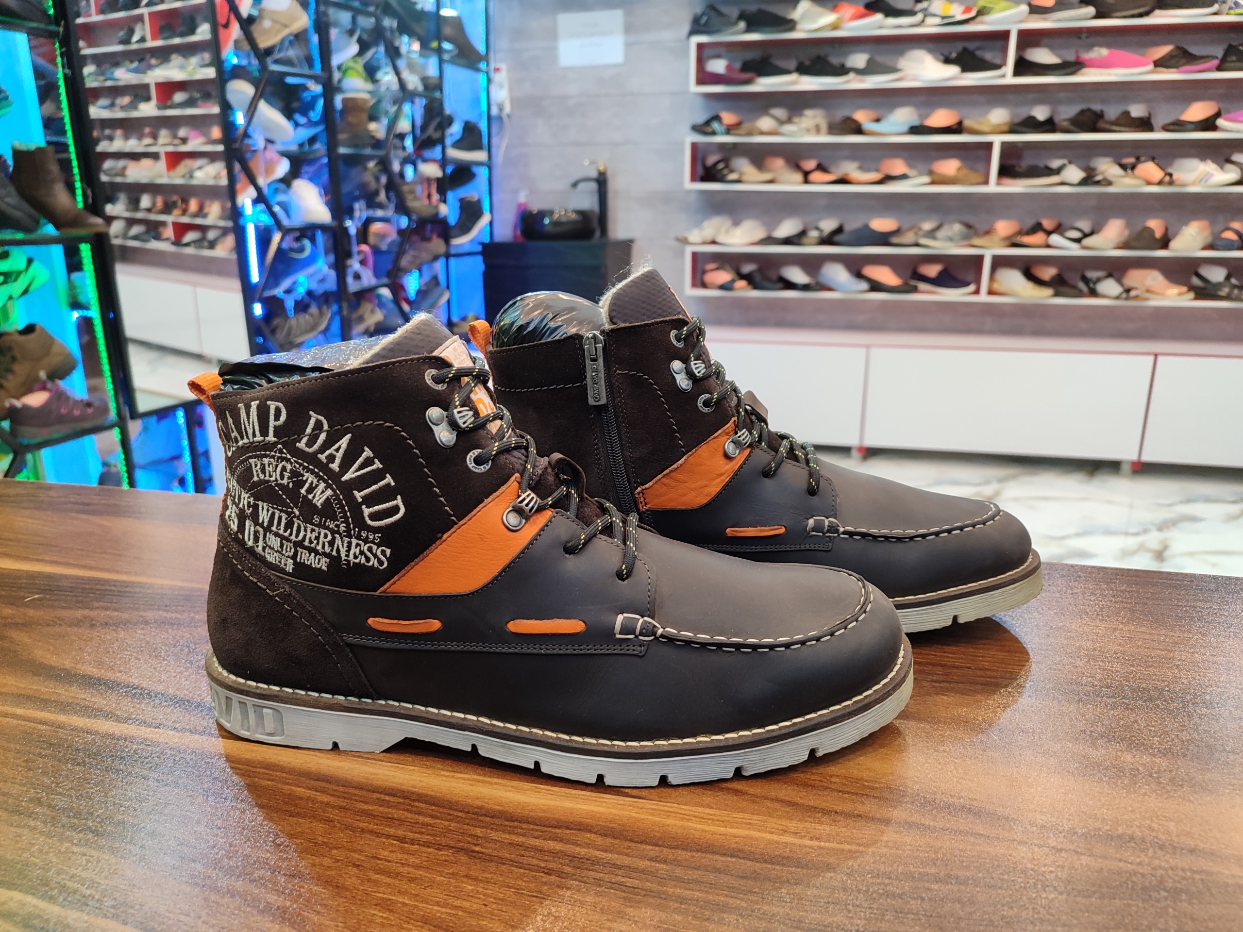 بوت اورجینال انگلیسی برند کمپ دیوید خیلی تمیز در حد آک با زیره اختصاصی ضد لغزش و سایش رویه تنفسی و ضد آب با ضمانت اصل بودن بسیار نرم و راحت مناسب پیاده روی و روزمره . کار با ضمانت اورجینال تقدیم میگردد. لطفا جهت دیدن کارای بیشتر از طریق گوگل گالری کفش خاص خرم اباد با لوگوی مشکی دنبال کنید