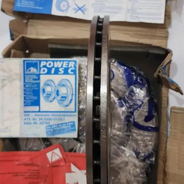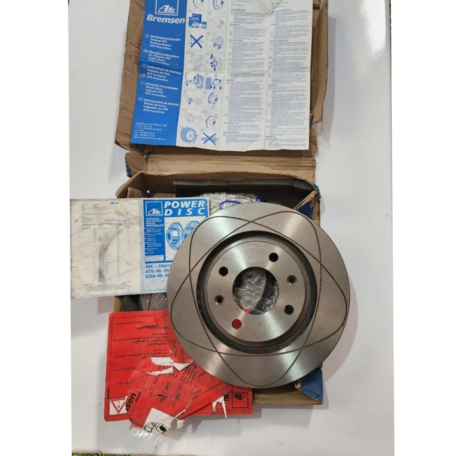 یه جفت دیسک ترمزتقویتی جلوزانتیاوپژو405glxوslxوپارس وسمندمعمولی والبته خودروهای بااین سایزدیسک فراآلیاژبسیارنایاب ساخت Ati آلمان اصل اصل شیارداربرای ترمزگیری قویتربرای خودروهای موتور تقویت مسابقه ای وپیستmadeingermany عکس سوم حک لیزریAti