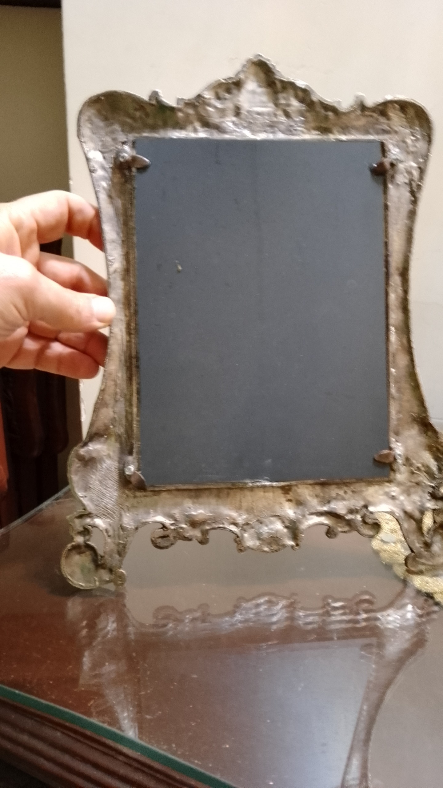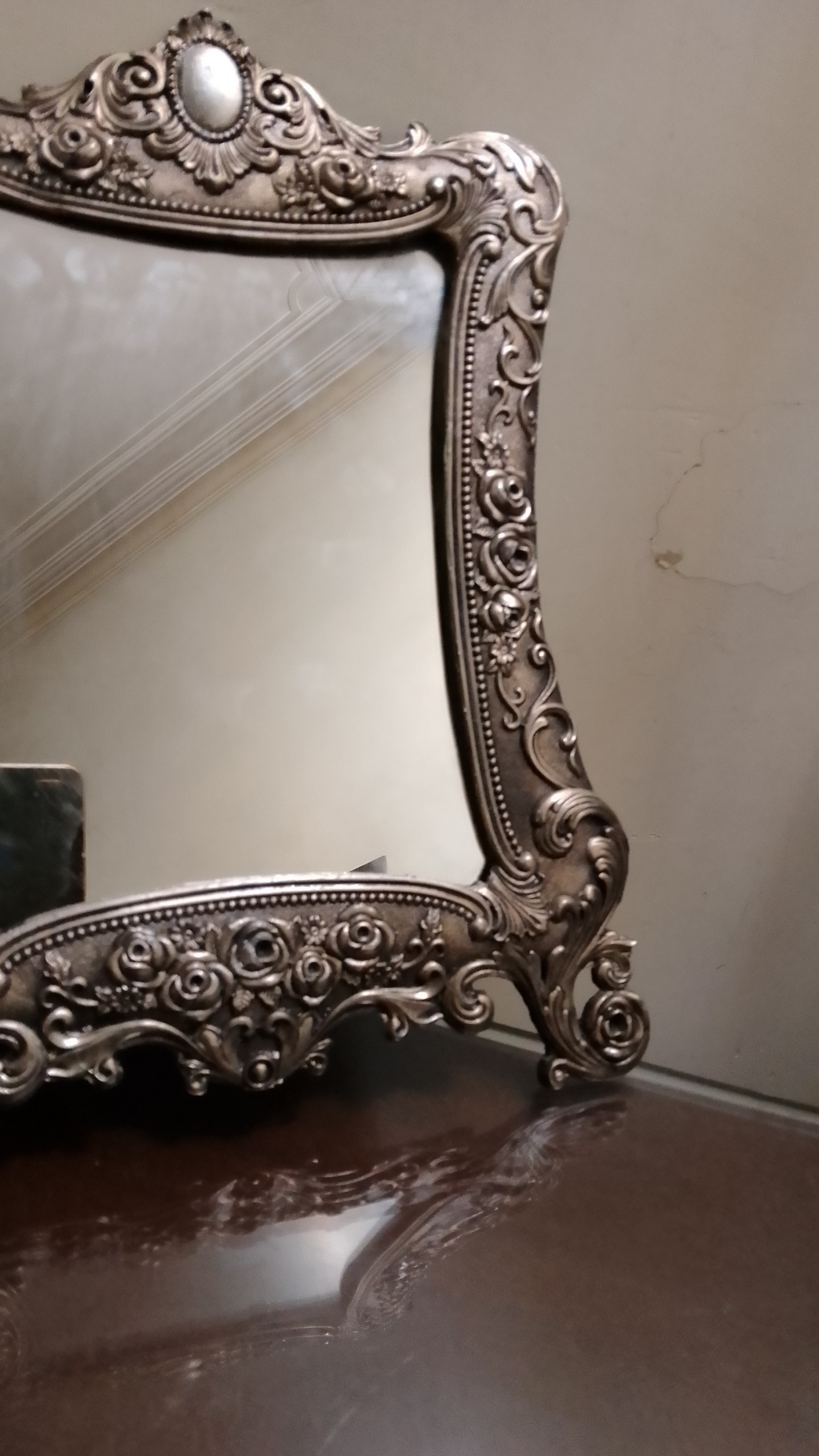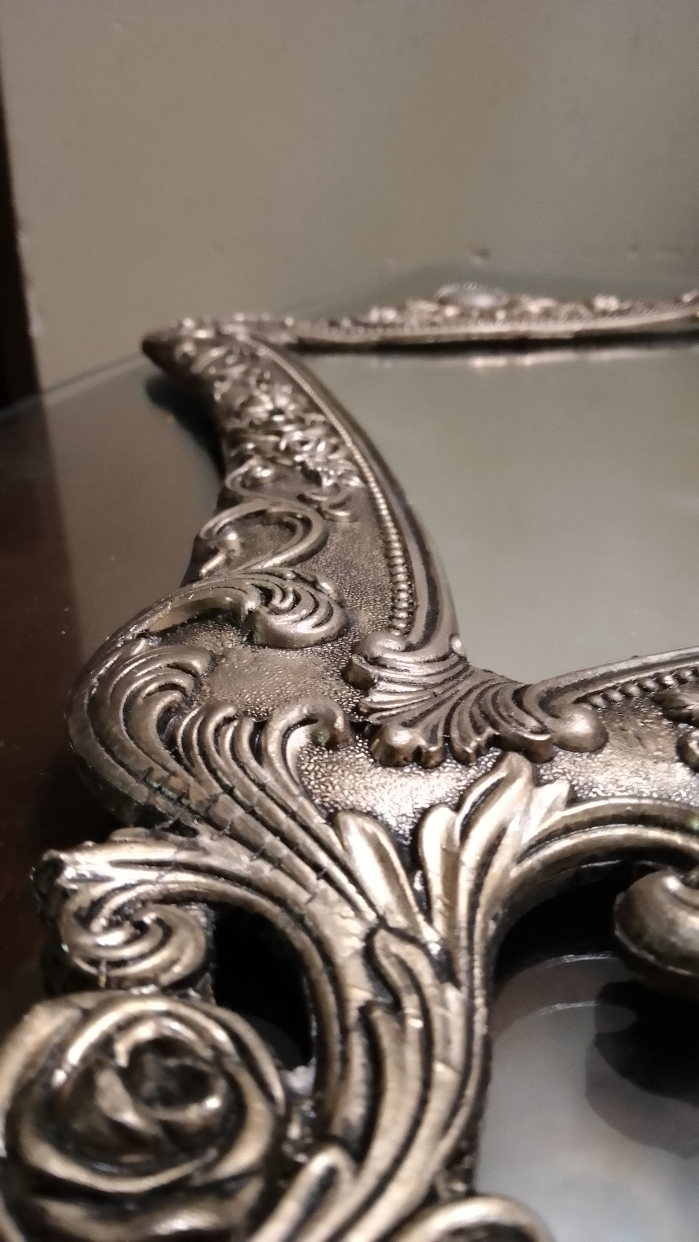 قاب آینه قدیمی سیلور سنگین فلزی نقش برجسته