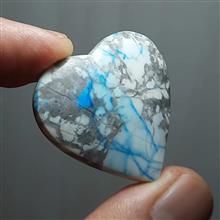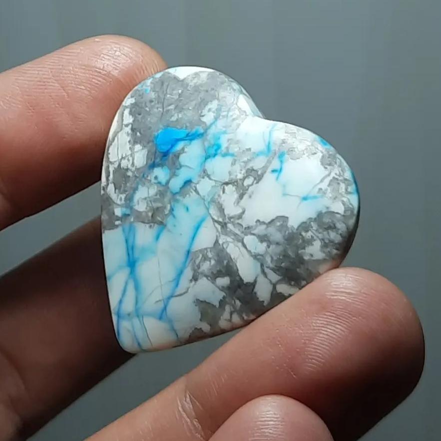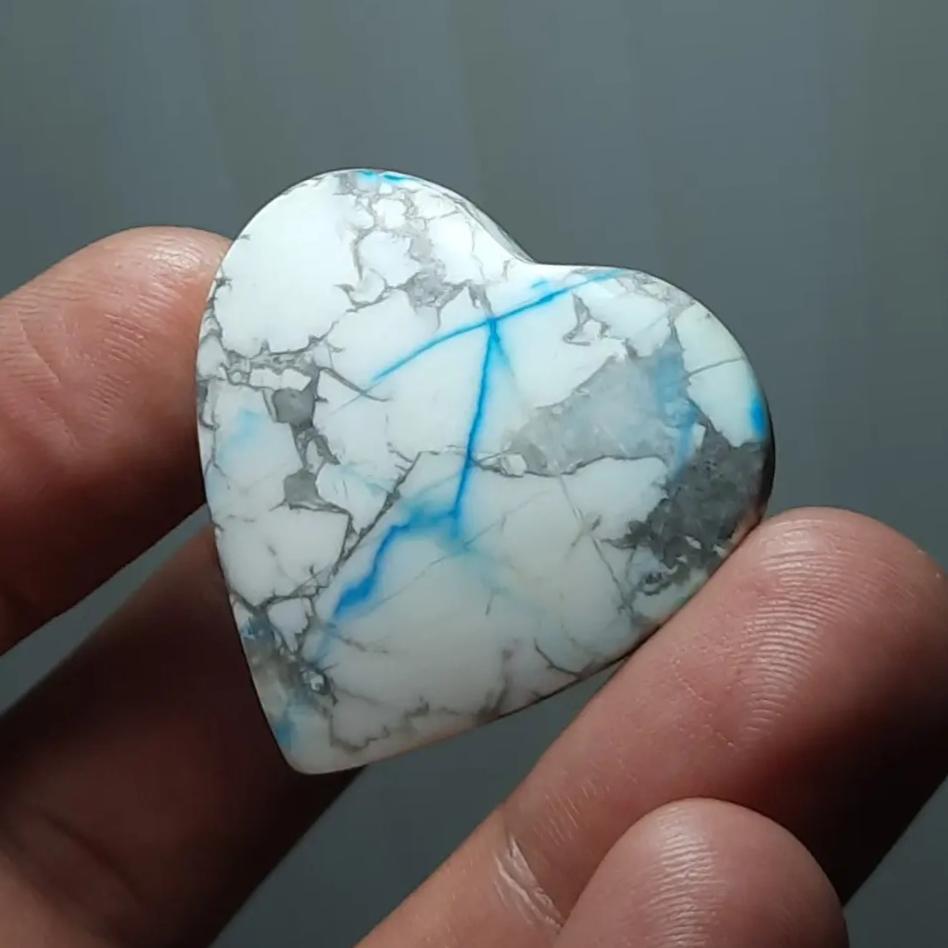 هاولیت طبیعی و اصل معدنی ، رنگ و منظره کاملا طبیعی بدون بهسازی و تقویت ، تراش قلب دقیق و بی نقص ، منظره و ترکیب رنگی فوق العاده در هر دو سمت سنگ ، ارتفاع دار و چشمگیر
