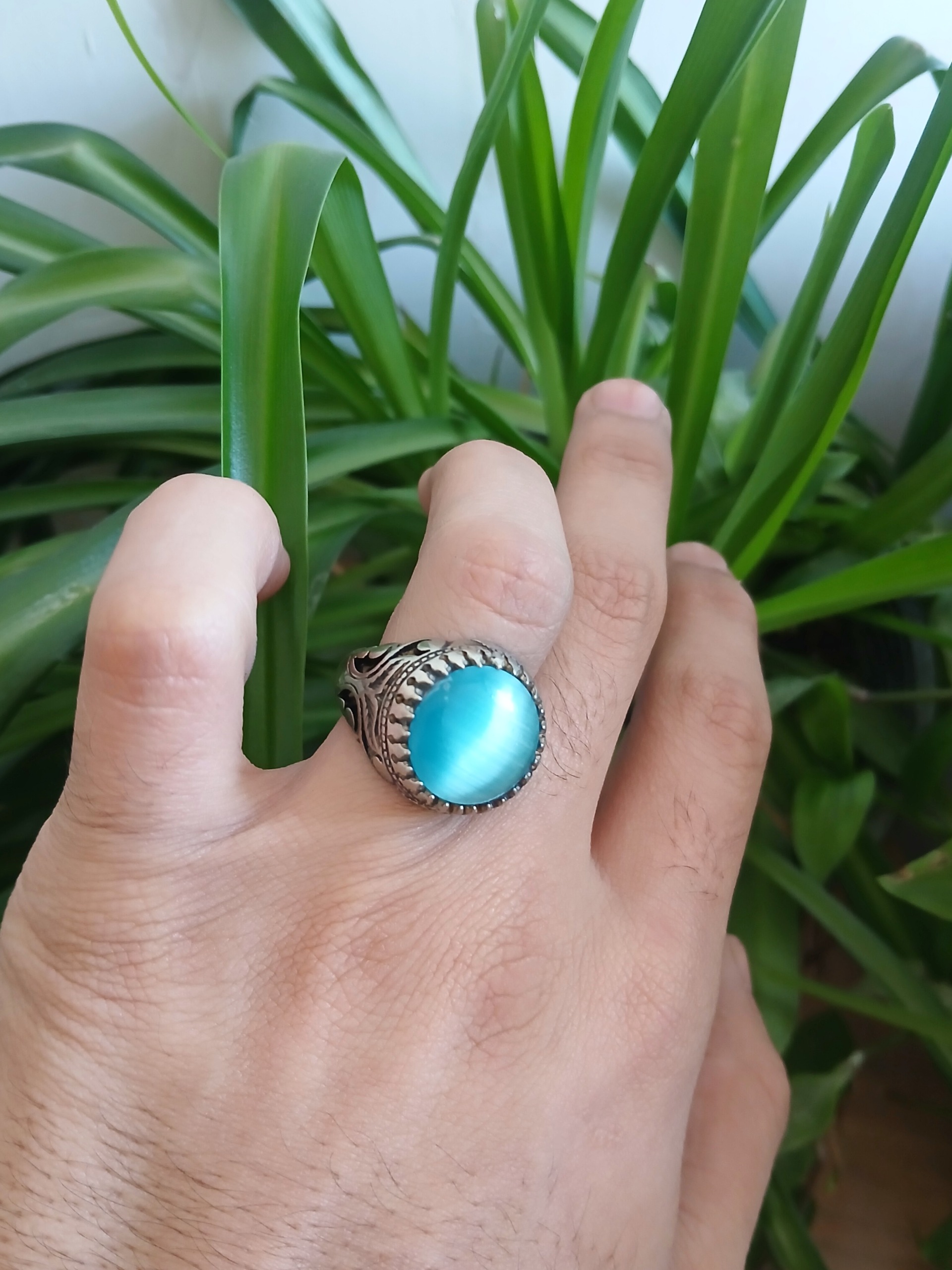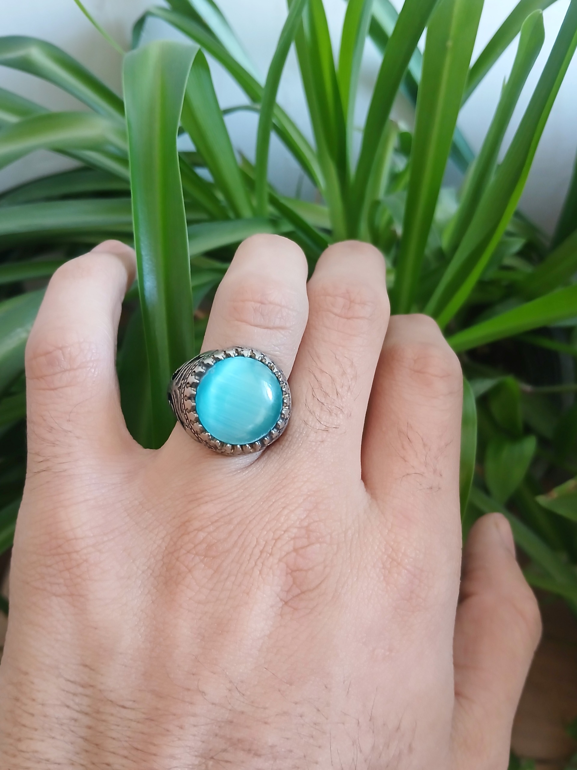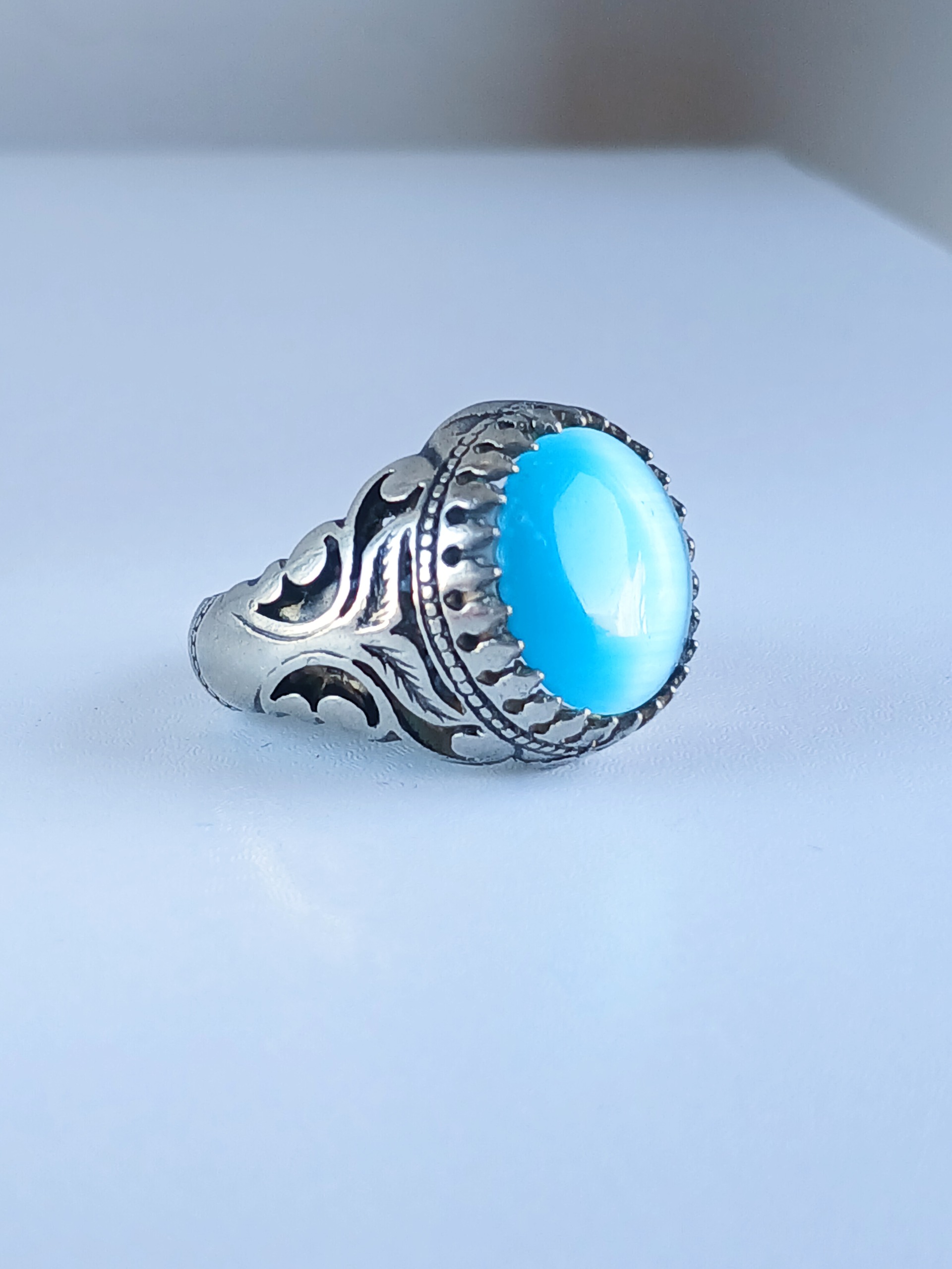 انگشتر چشم گربه آبی آسمونی