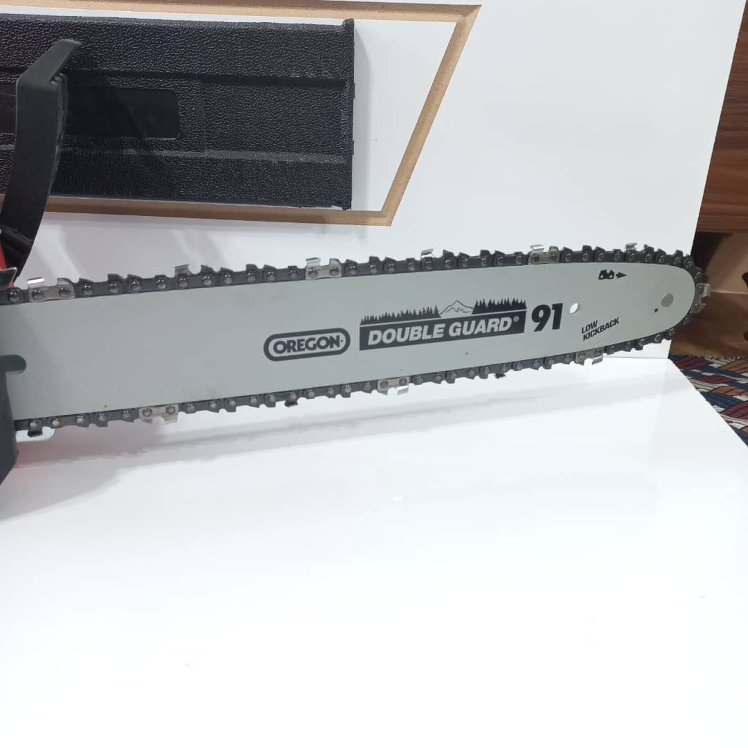 این اره برقی با طول برش 32.5 سانتیمتر مجهز به یک میله راهنمای محکم به طول 35 سانتیمتر و همچنین یک زنجیر باکیفیت و یک زنجیر یدکی اضافی با حلقههای محرک به ضخامت 1.3 میلیمتر، 52 حلقه محرک و گام زنجیر 3/8 اینچی است.