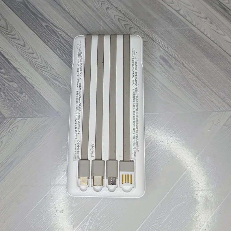 داری 4 عدد کابل کاربری متصل به بدنه برای شارژ انواع گوشی و وسایل برقی