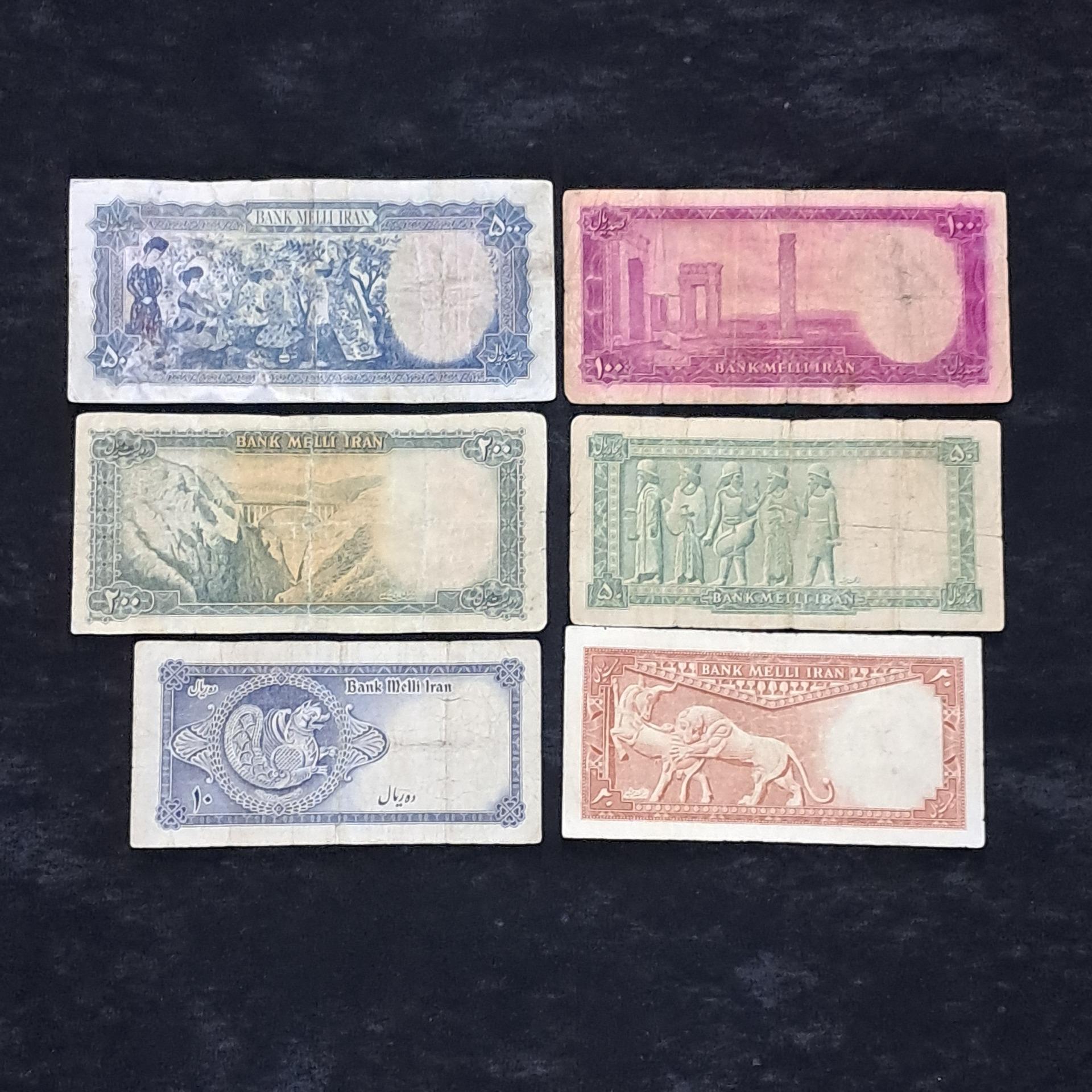 ست بسیار زیبای سری سوم.اسکناس ها کار کرده می باشد و 5000 ریال مینیاتور دارای ترمیم است ولی شماره قنگ هم هستش. لطفا ملاک خرید خود را تصویر قرار دهید