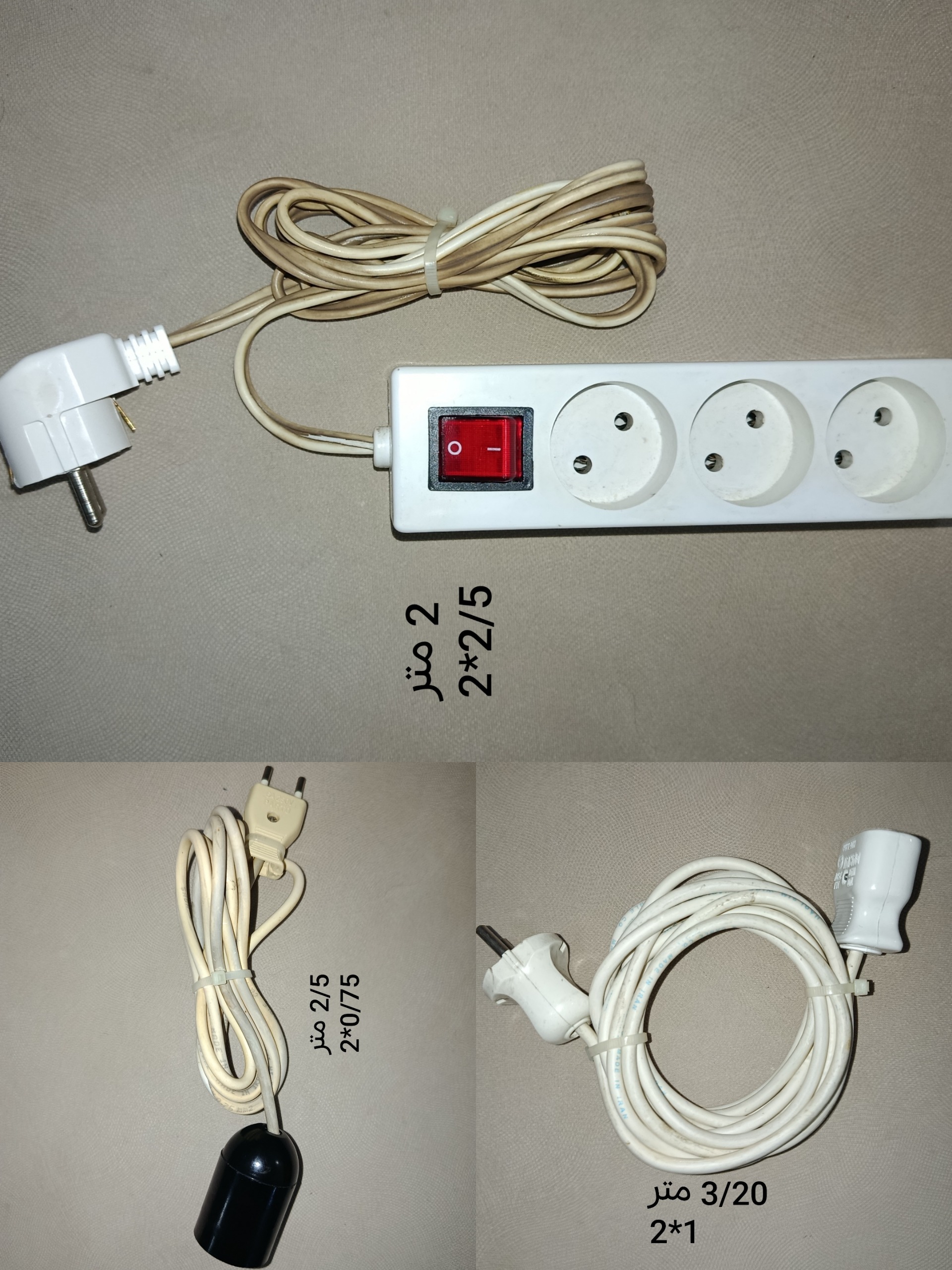 فروش 7 عدد سیم سیار برق بصورت یکجا به شرح زیر است: