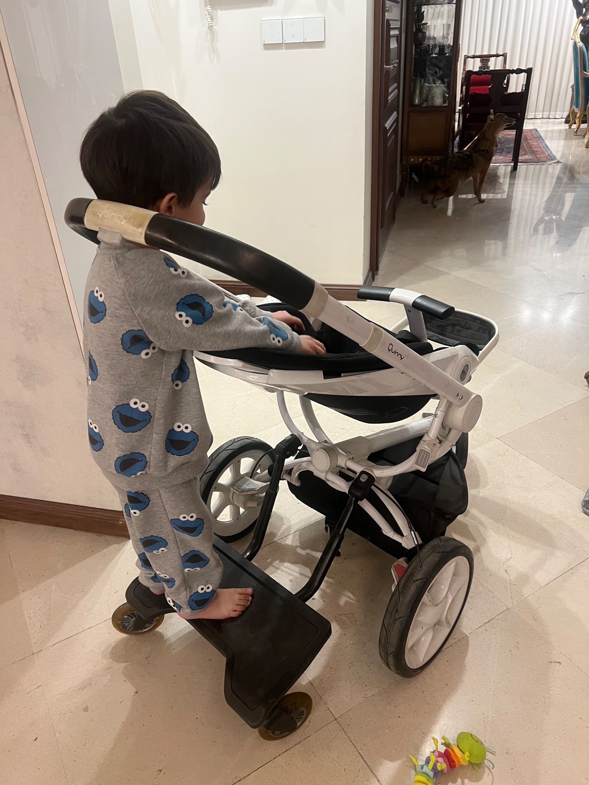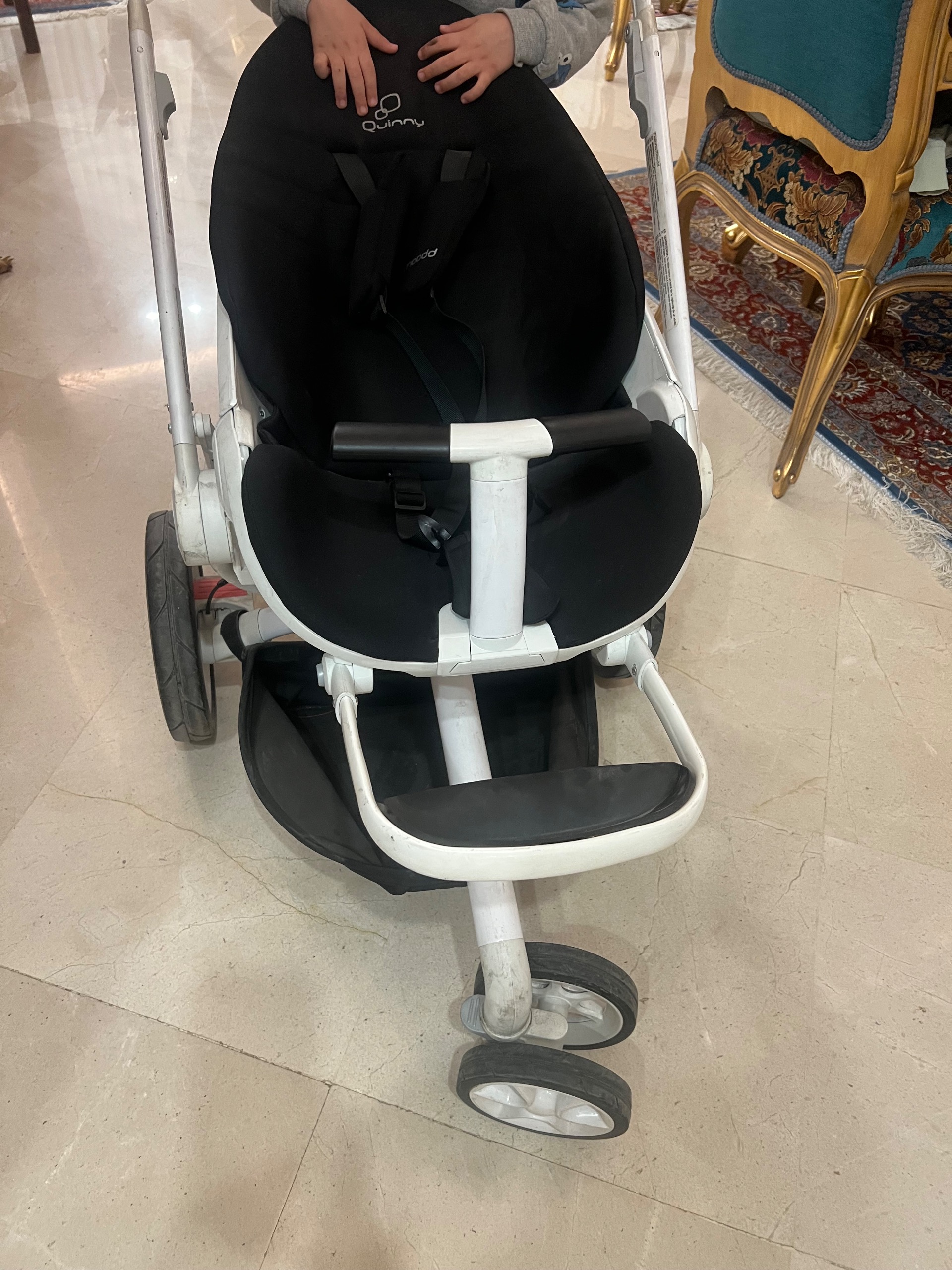 مشکی فِرم سفید با یدک کش که خودم 3 سال پیش 5 تومن خریدم مناسب برای ایستادن و کسایی که دوتا فرزند دارن