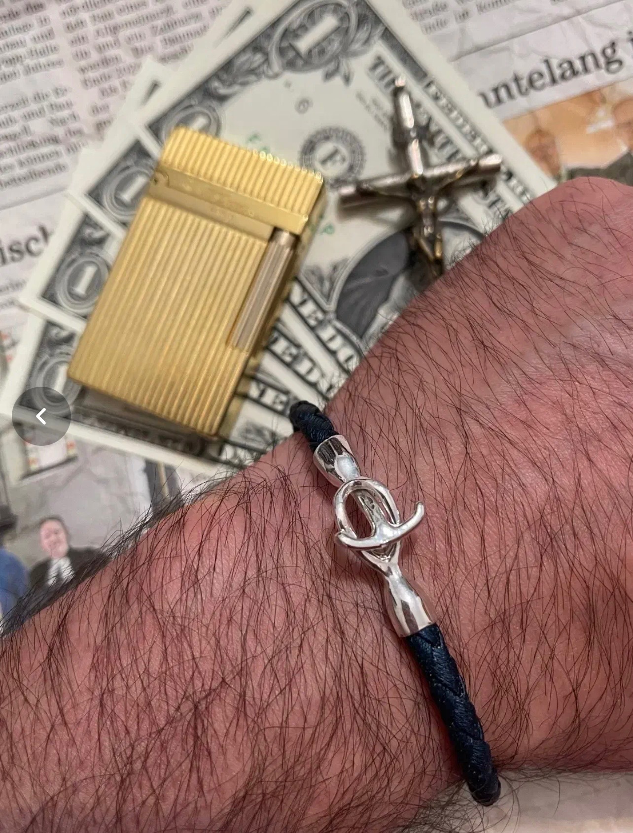 دستبند نقره لنگر امگا دست ساز وارداتی بسیار شیک و خاص با بند چرمی رنگ خاص سرمه ای مدل کلاسیک مناسب جهت ست کردن روی ساعت و تیپ کلاسیک و اسپرت کاملا اکبند (کمیاب) مهر عیار نقره حک شده یونی سکس هم قابل استفاده مردانه هم زنانه قابل تغییر سایز طول:22سانت