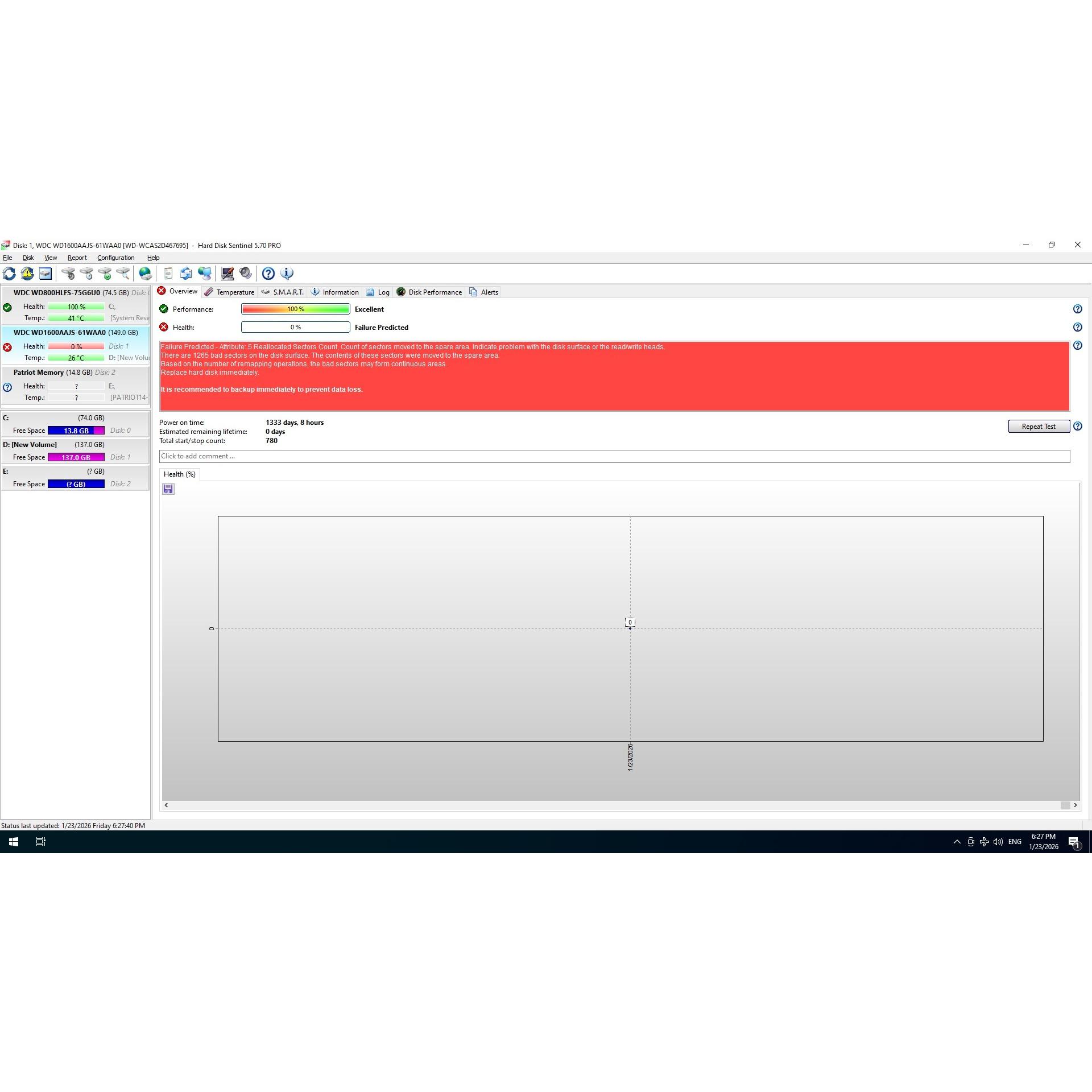به وسیله نرم افزار کاملا تست شده است. 12 گیگابایت اول هارد بدسکتور دارد و به صورت پارتیشن بندی نشده جدا شده است. عملکرد 100 درصد و سلامت 0 درصد