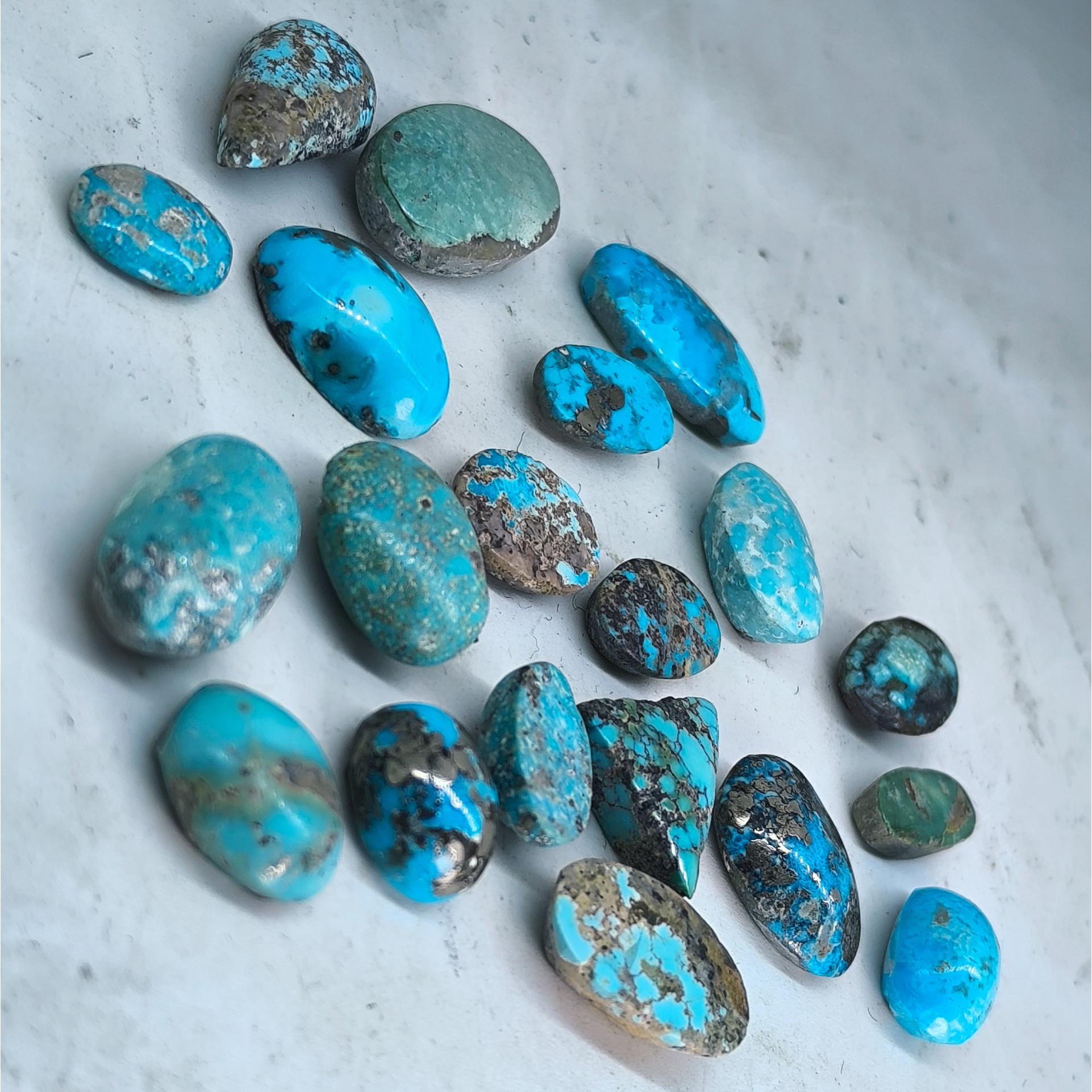 مزایده 20 عدد فیروزه نیشابوری زنده بدون بهسازی انواع تراش های قیمتی